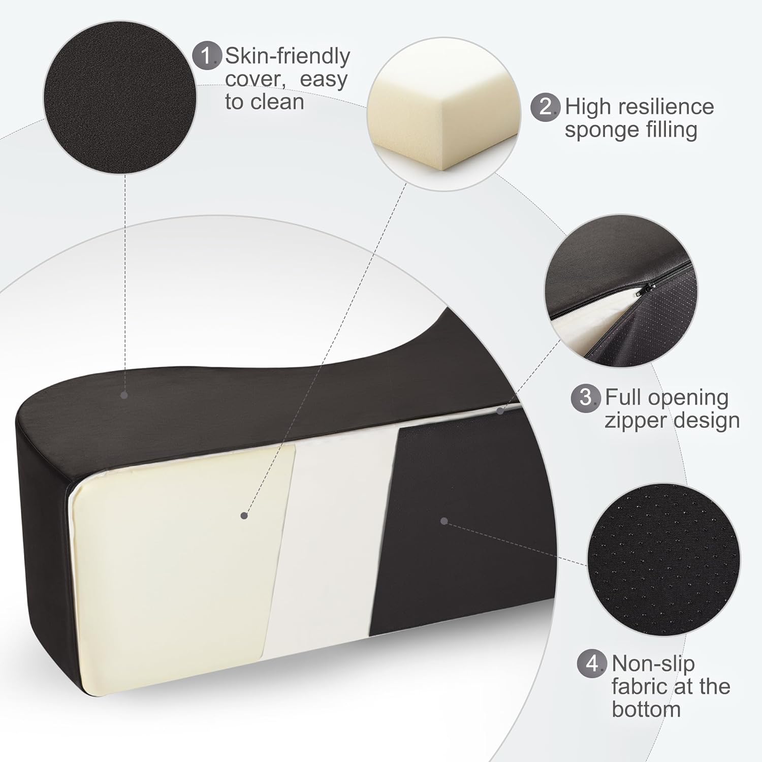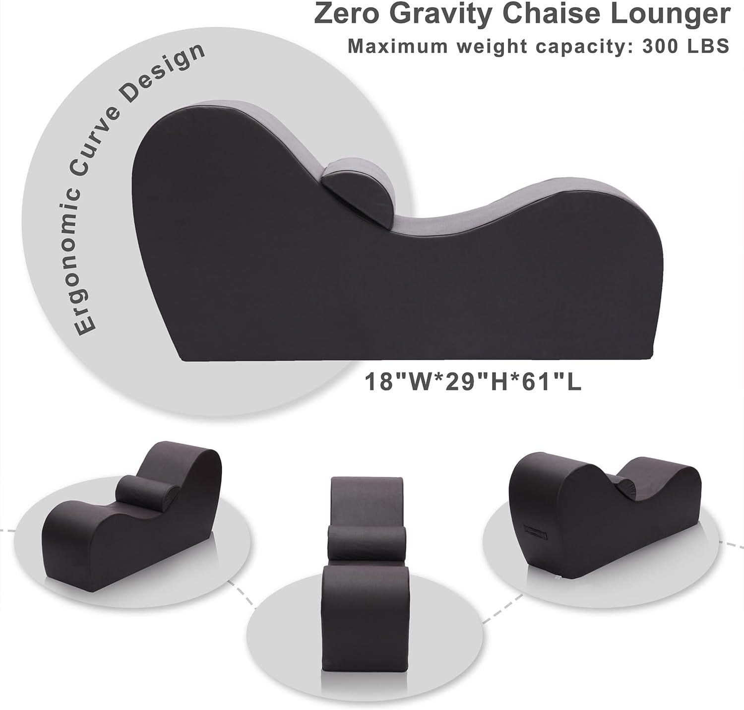 Iroomy Yoga Chaise Lounge Chair for Stretching Relaxation Exercise, Ergonomic S Curved Chaise Lounge, Full High-Density Foam Filled Yoga Chair for Indoor Living Room Bedroom Lounge, Black-Easy Clean