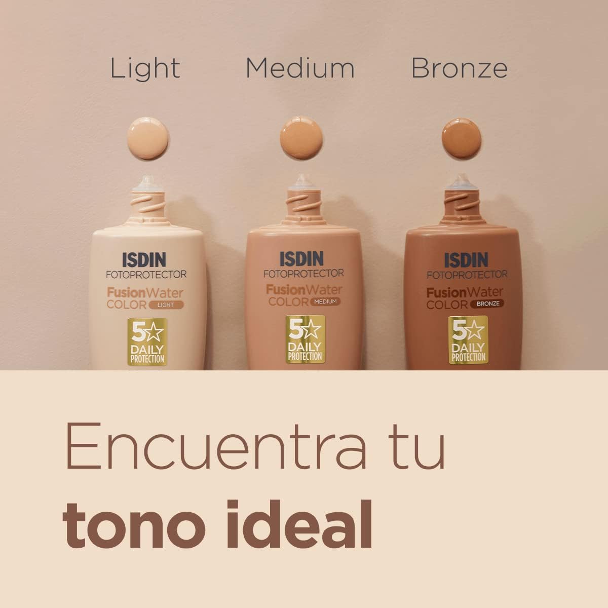 ISDIN Fusion Water Color SPF 50 (Light) 50ml, Tinted daily facial sun cream, Ultra-light texture