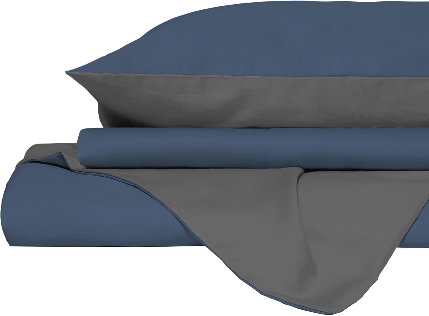 Italian Bed Linen Natural Color Duvet Cover Set with Doubleface Solid Colour Bag Sheet and Pillowcase, 100% Cotton, avio/Smoke, single