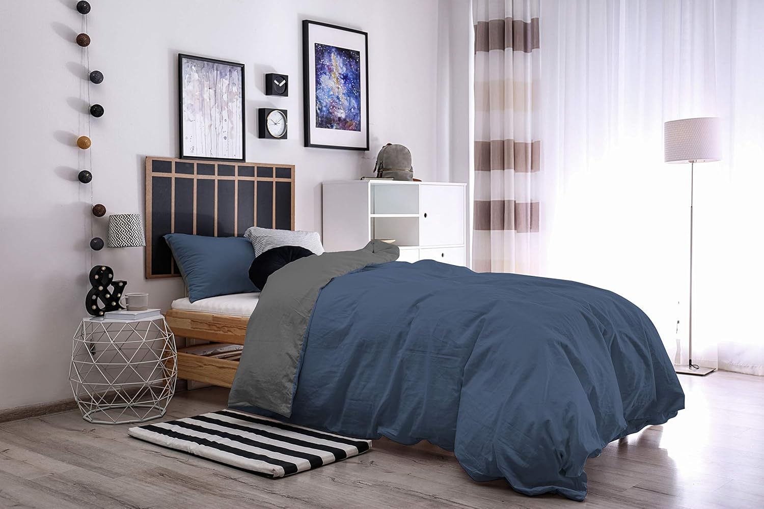 Be the first to review “Italian Bed Linen Natural Color Duvet Cover Set with Doubleface Solid Colour Bag Sheet and Pillowcase, 100% Cotton, avio/Smoke, single”