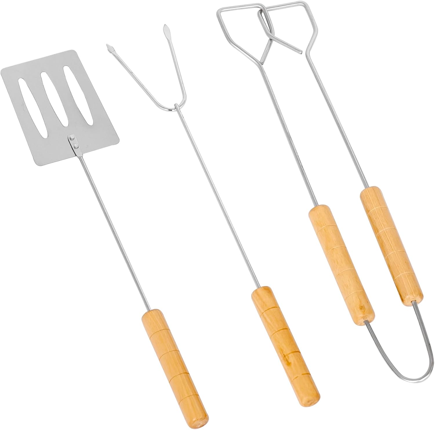 iTrend BBQ Tools Set – 3 Piece Barbecue Grill Tool Kit – Spatula, Tongs, and Fork – Stainless Steel Grilling Utensils – with Wooden Handle – BBQ Accessories for Outdoor, Party, Picnic or Camping