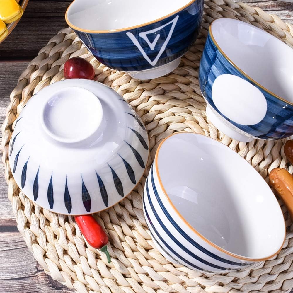 Japanese Style Rice Bowls Set of 4 Serving for Rice Soup Cereal Oatmeal (4.5”)