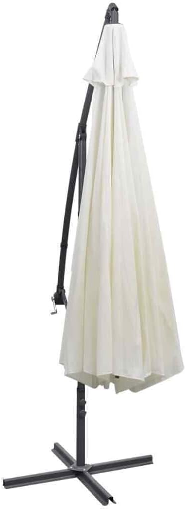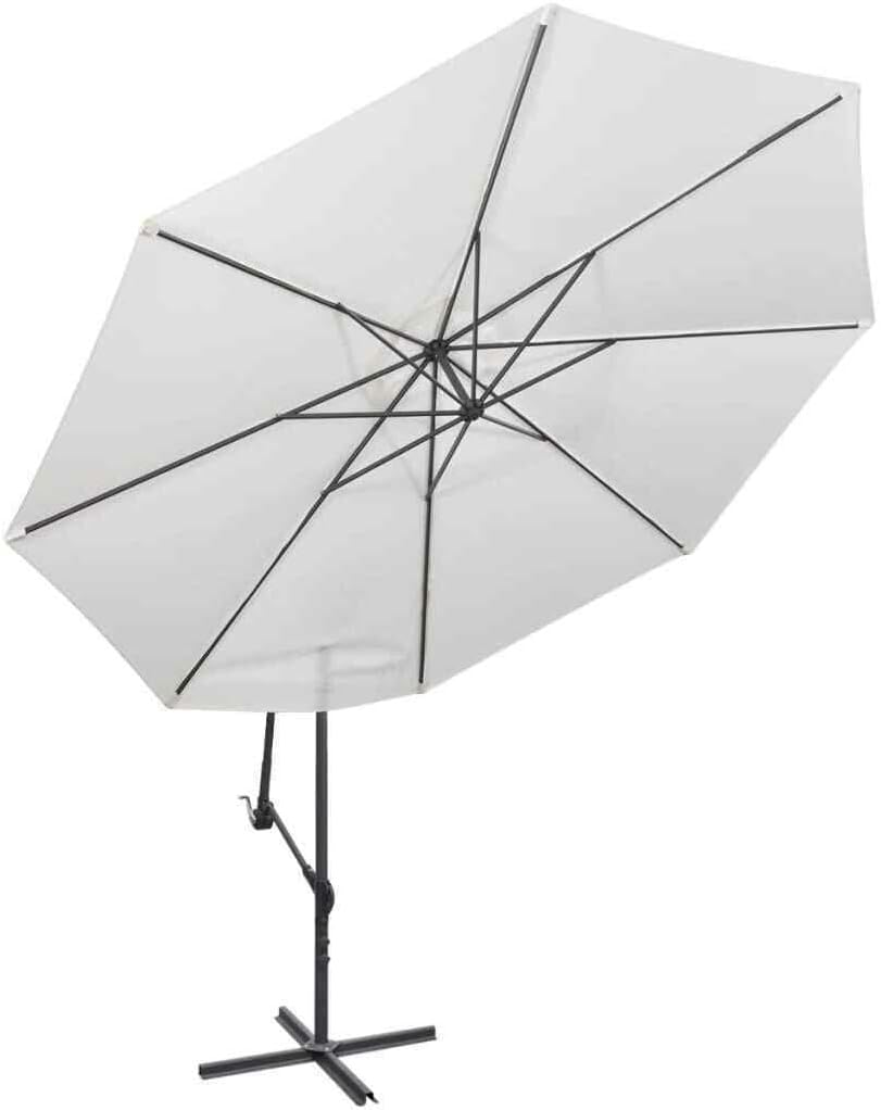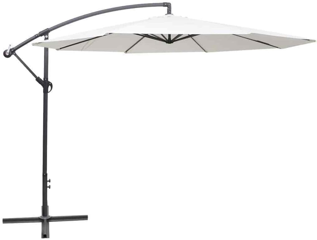JEEVOO Cantilever Umbrella 3.5m Garden Parasol Crank Dinner Coffee Base Patio White Patio Umbrella Patio Umbrella