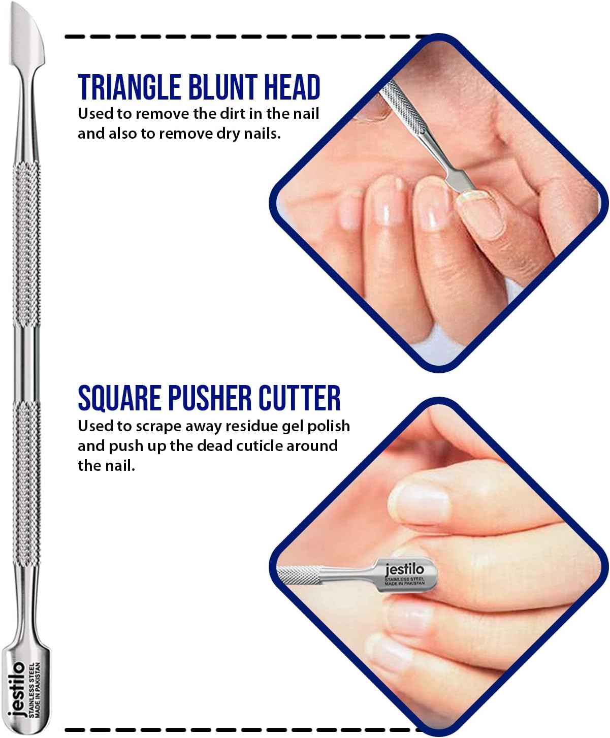 We at Jestilo are here to o er you with a unique, reliable, and durable set of cuticle tools. We strongly believe in “double the tool, double the fun”. We bring you a manicure and pedicure set that is made from surgical-grade stainless steel so that you can enjoy that salon-like mani-pedi right from the comfort of your home.
