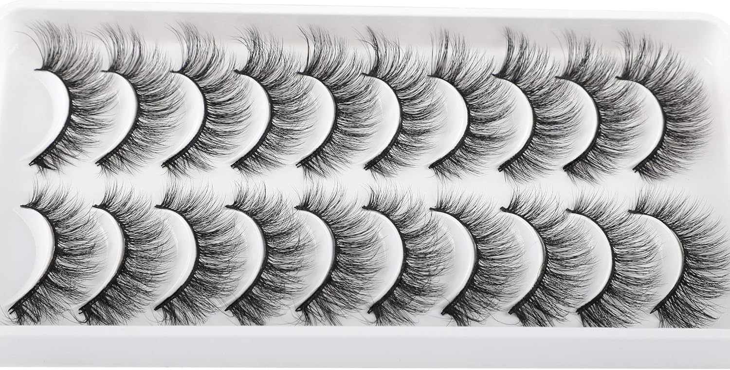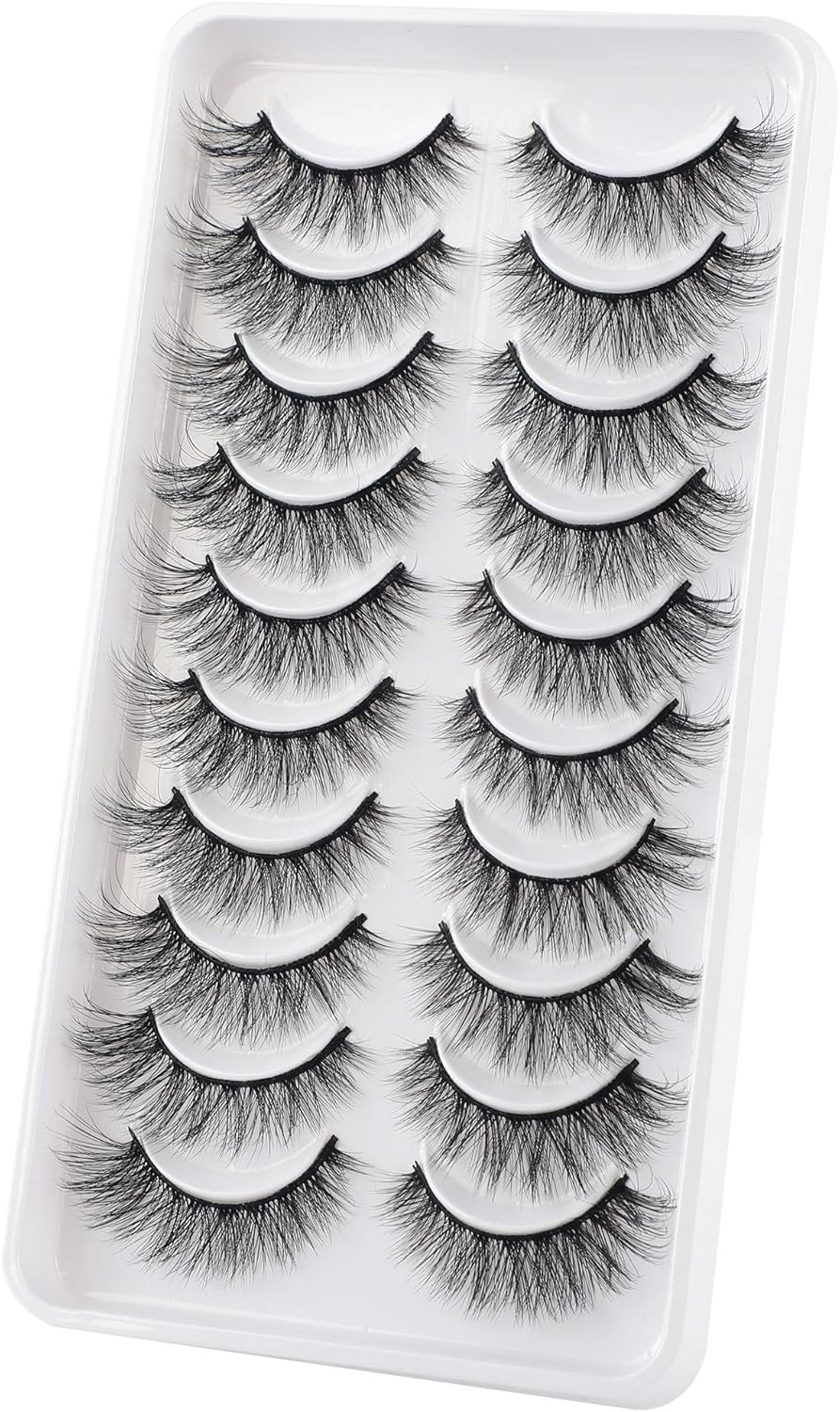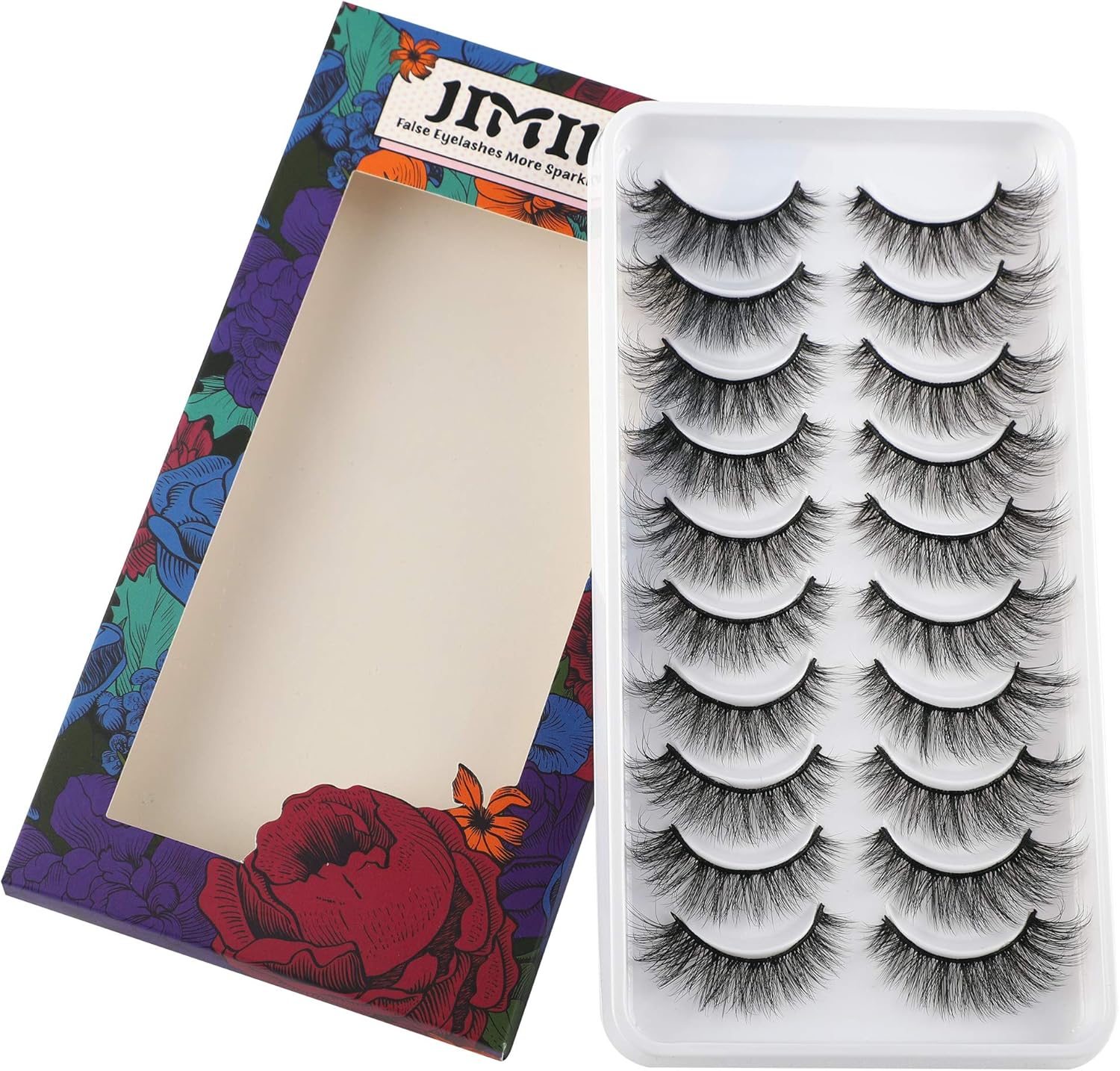 JIMIRE Cat Eye Eyelashes 10 Pairs Fake Eyelashes Fluffy Natural Look False Lashes 14mm Lashes Pack