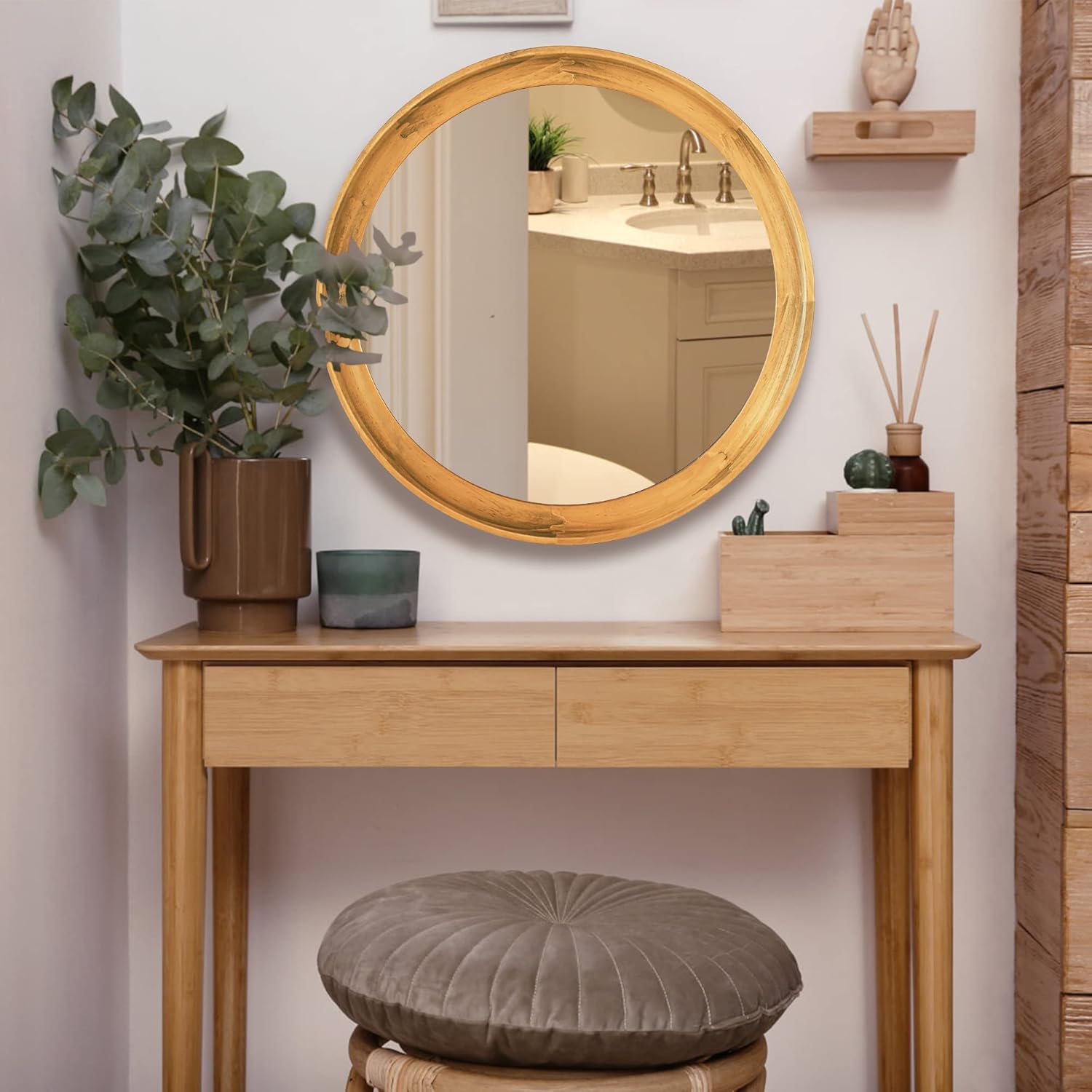 Handmade circle Mirror Versatile 100% Solid wood Frame,Natural Decoration.HIGH Quality Glass Provide super HD imaging,Moisture proof and good resistance to causticity