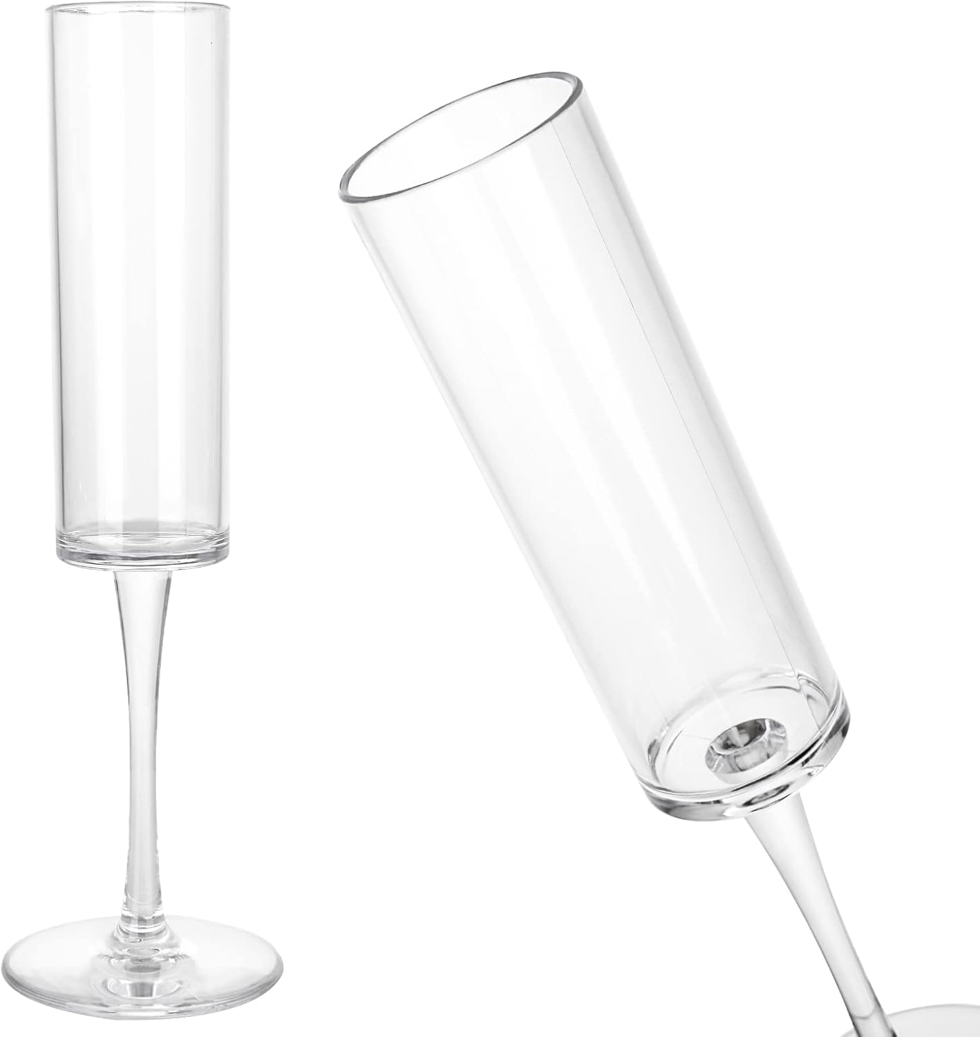 JMIATRY upmarket premium quality hard plastic champagne glasses can pour coca cola, juice, lemonade, whiskey, cocktails, champagne, white and red wine, great for using in Christmas, Thanksgiving, birthday party, wedding party, picnics, camping, poolside, BBQ or other activities. Material High quality PC material Color Transparent Size Capacity 165 ml/5.8 oz and Height 24.5cm x Width 7.1cm, the caliber 7.2cm Package 165ml 6 Pcs Unbreakable Plastic Champagne Flutes 👍【HIGH QUALITY】JMIATRY plastic champagne flutes made of high quality PC material, durable and non-toxic, can use it with confidence. Handcrafted with a cylindrical body and slender stem to elegantly hold your drink, the best choice for restaurant patios, pool-side bars, or outdoor catered events. Customers are positive about the appearance and quality of the drinking cup. They say it looks nice, is sturdy, and is of great quality. Some customers also mention that it’s perfect for use when in Ascot. AI-generated from the text of customer reviews