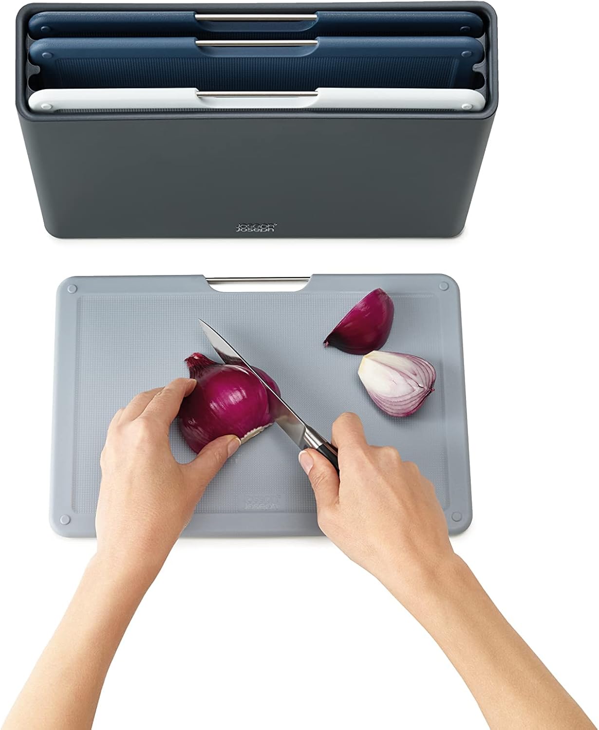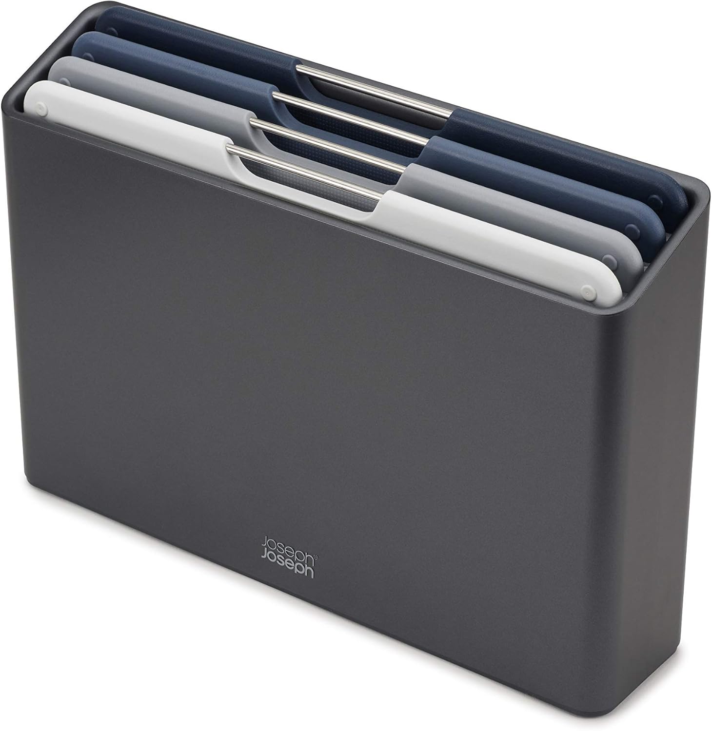 Joseph Joseph Folio 4-Piece Colour coded Chopping Board Set, Slimline case for organised storage, Regular – Graphite