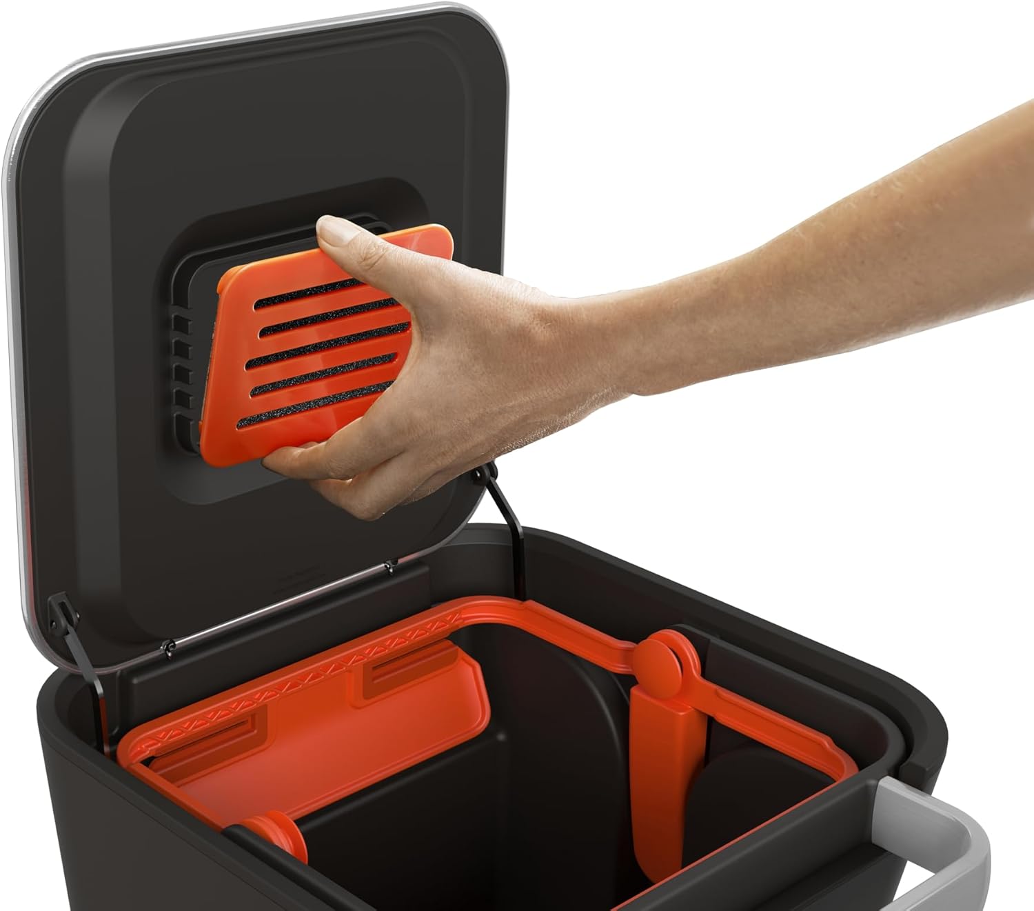 Joseph Joseph Intelligent Waste Titan Trash Compactor Kitchen Bin with Odour Filter, Holds up to 60L After Compaction, Stainless Steel, 20L