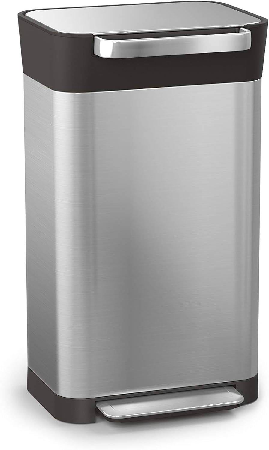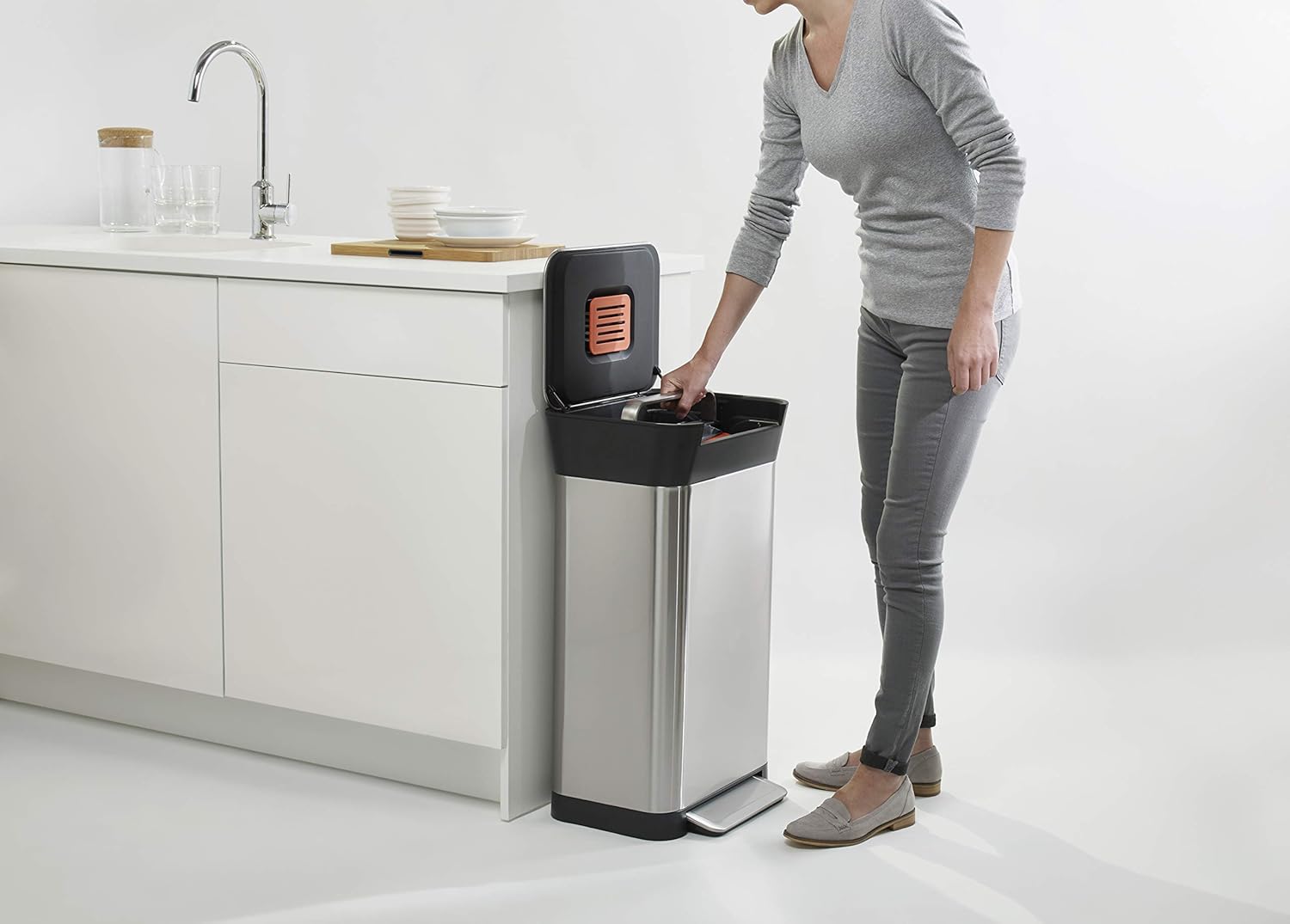 Joseph Joseph Intelligent Waste Titan Trash Compactor Kitchen Bin with Odour Filter, Holds Up to 90L After Compaction, Stainless Steel, 30L