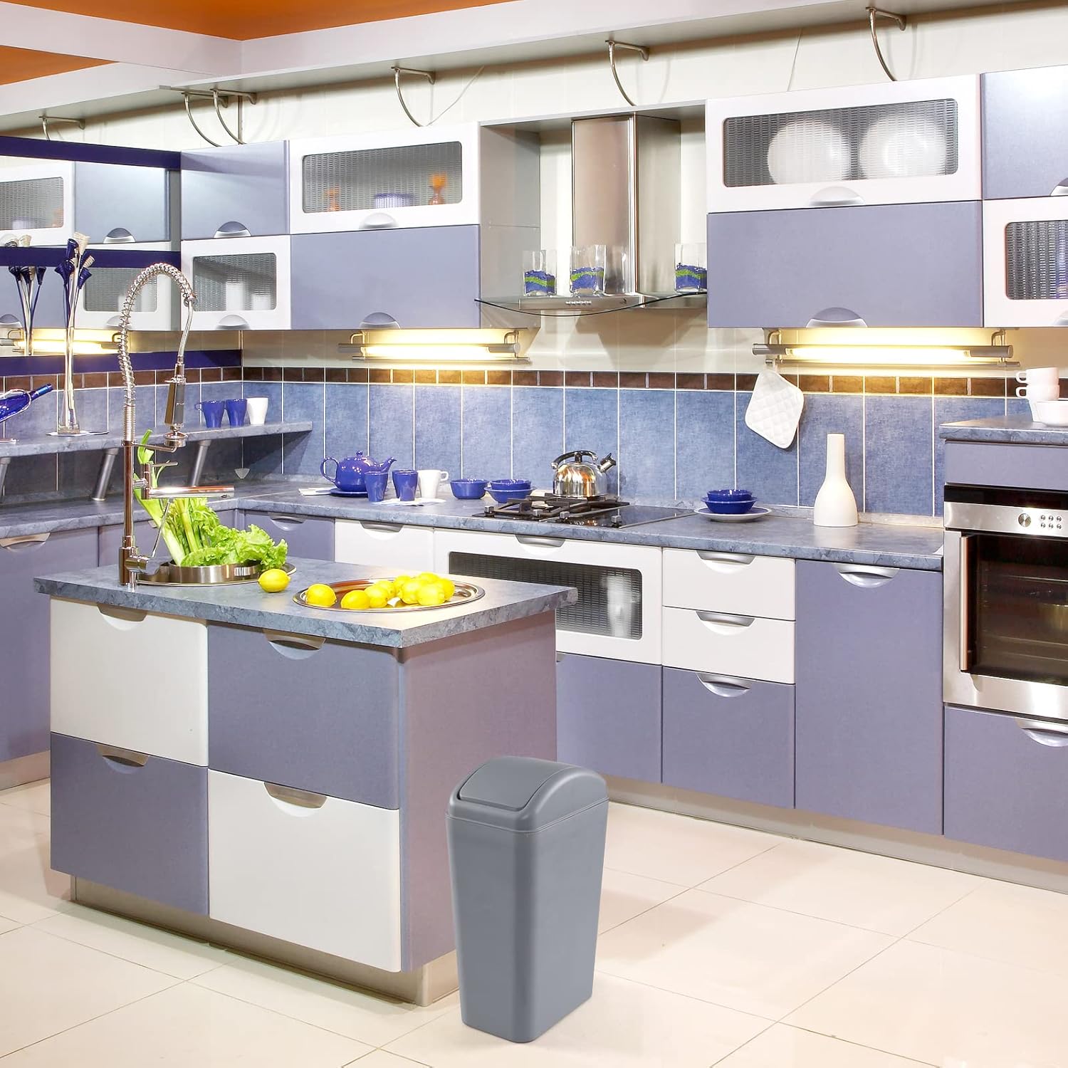 Joyeen 14 L Trash Can with Swing Lid, Plastic Kitchen Waste bin, Grey