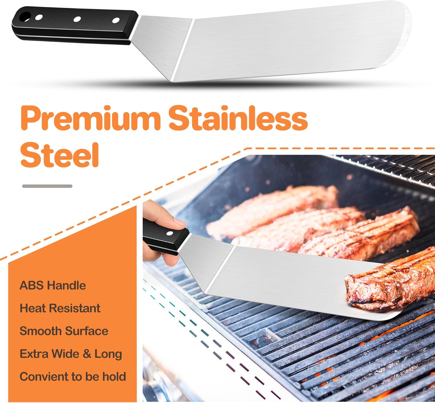Joyfair Griddle Spatula, Stainless Steel BBQ Spatula Set of 3, Burger Turner/Griddle Accessories/Pancake Flipper Great for Cast Iron Griddle BBQ Grill Flat Top, Commercial Grade & Dishwasher Safe