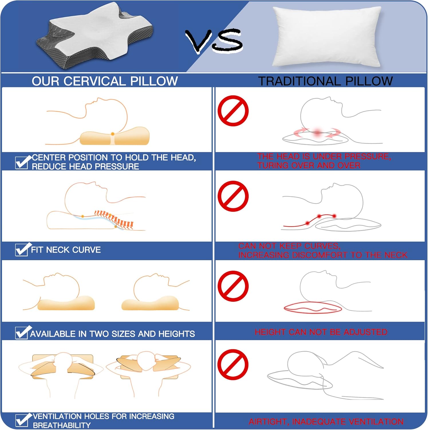 🌙ERGONOMIC DESIGN: The contour pillow features an ergonomic design to help keep the neck bent naturally, support and align your head, neck, shoulder to maintain a good sleeping posture. The specific grooves on the sides allow your arms to have a good rest for exact support and avoid numbness.