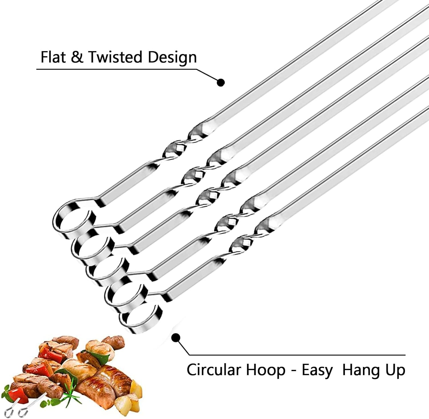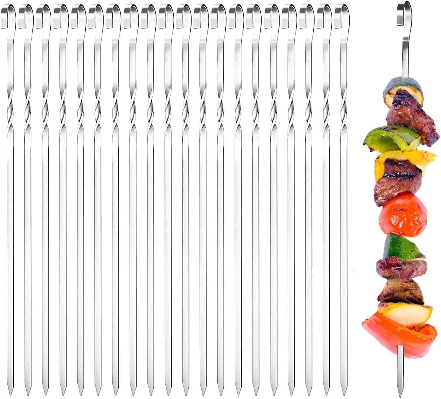 【UNIQUE TWISTED DESIGN】 twisted BBQ skewers are designed to fit on the lip of any grill at any angle for turning and positioning them at any angle for more thorough cooking.