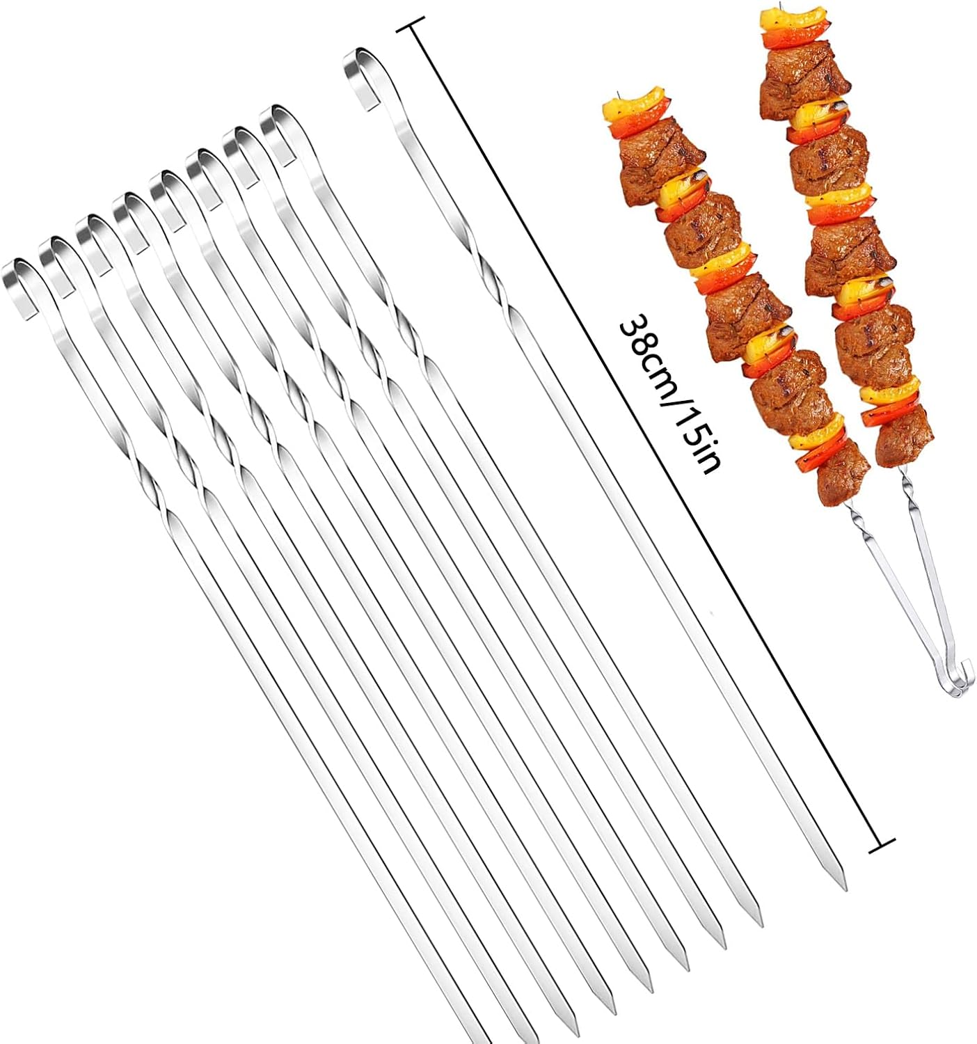 Jsdoin Kebab Skewers 20PCS Stainless Steel BBQ Grilling Skewers 38cm Reusable Shish Kabob Skewers Dishwasher Safe Grill Tools for Outdoor Barbecues, Family Gatherings (20PCS)