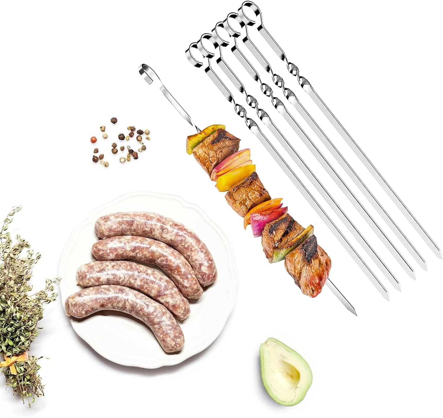 1.Durable high quality stainless steel skewers, easy to clean.
