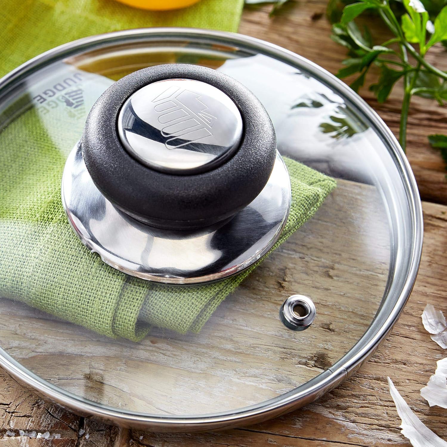 TOUGHENED GLASS LID – reinforced with a stainless steel rim and a vent hole to prevent over-boiling