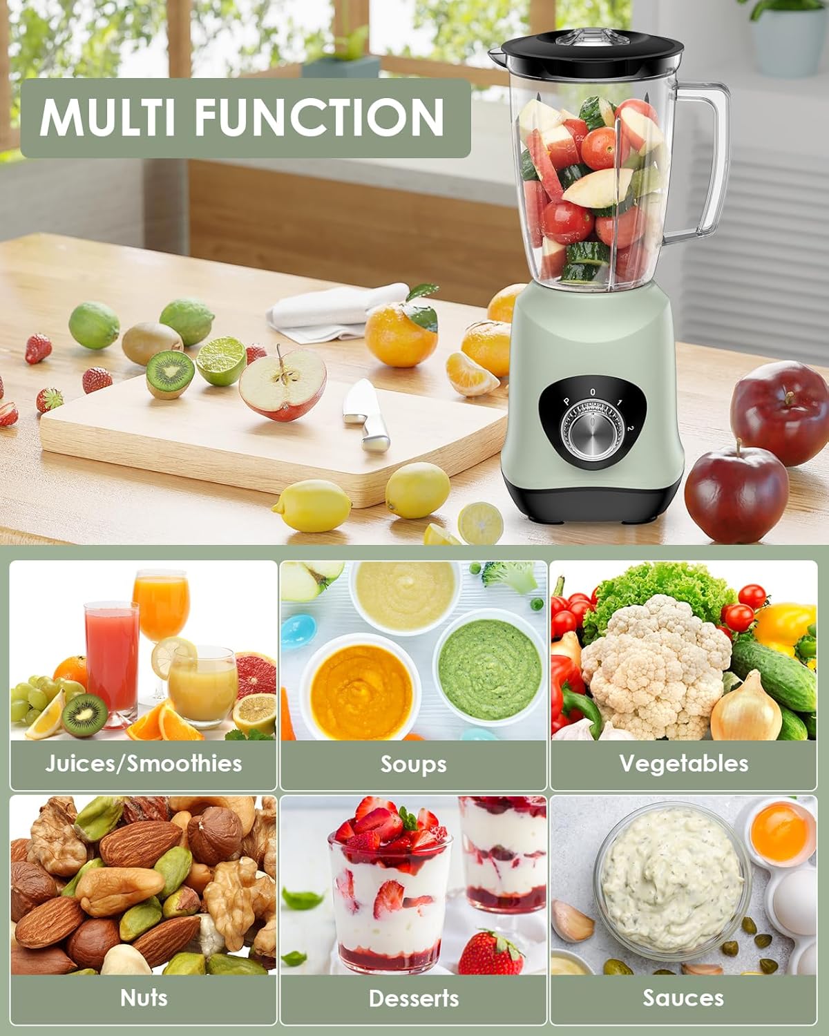 Large Capacity & Safety: With a 1L large capacity , this blender for kitchen can meet a family of 4-5 people’s needs in one cooking. The container of the blender is made of BPA-free, which is both safe and hard-wearing and ensures healthy use. It’s perfect for making frozen food, smoothies, shakes, and pureed fruit juices for family gatherings. Added with rubber non-slip mat, can make the chassis more stable and less noise while the motor is working, perfect for family and personal use.