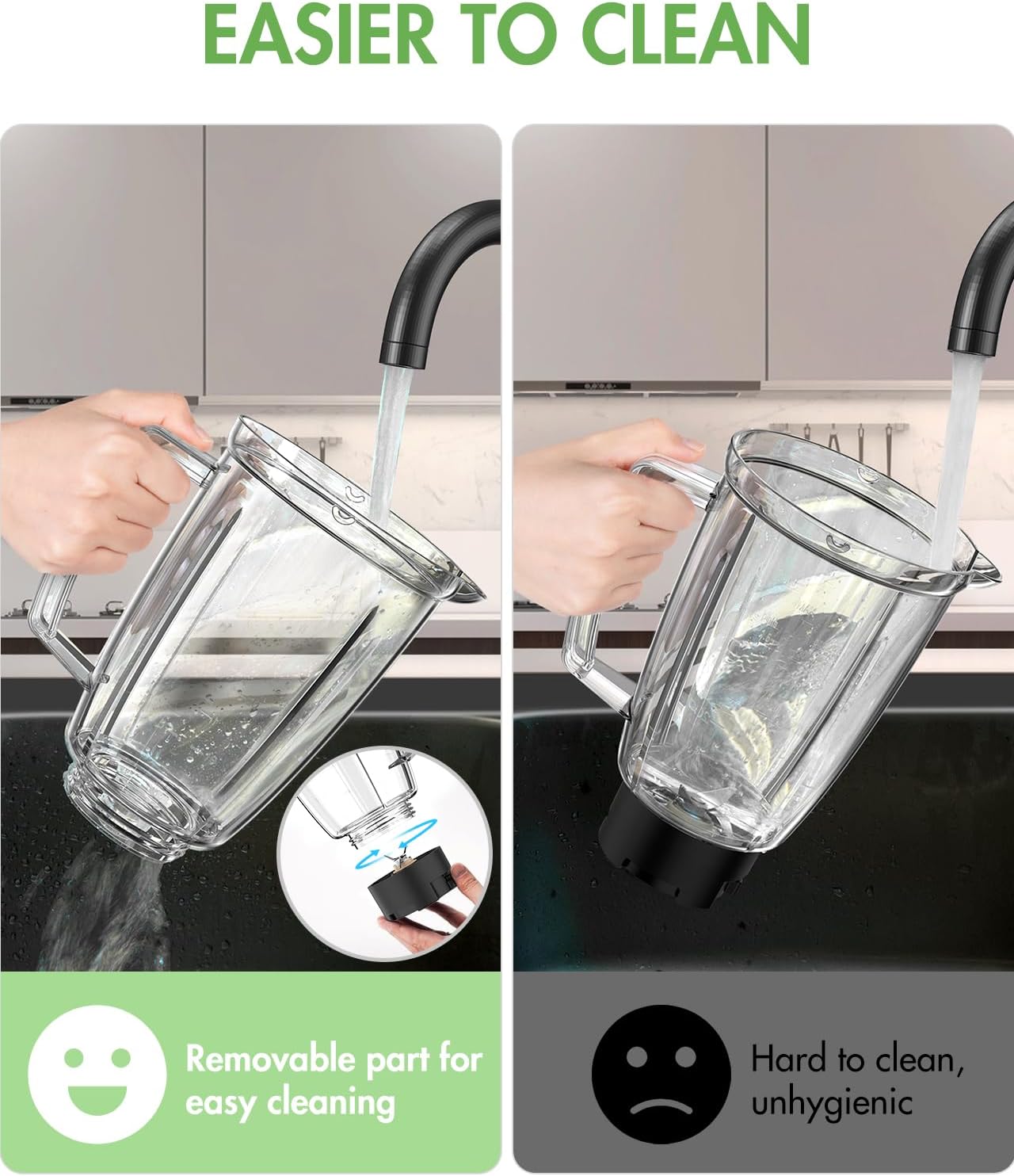 Easy to Clean and Simple to Operate: This jug blender is very easy to operate, just connect the power supply, activate the switch and you’re ready to go. The top of the lid is designed with a midway filler lid to add food at any time during the blending. The blade part at the bottom of the mixing bowl is detachable and can be cleaned by simply rinsing.