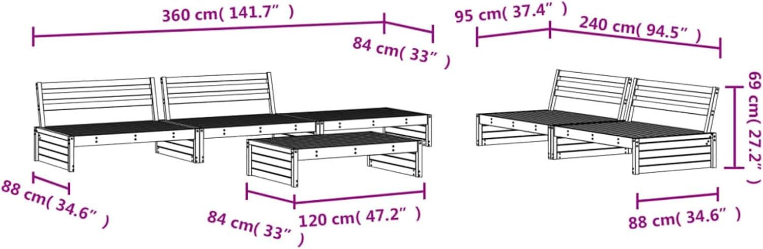 - Middle sofa dimensions: 120 x 95 x 69 cm (L x W x H)