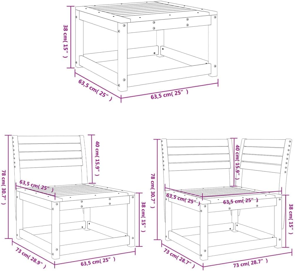 Slatted design: The slatted design of the wooden lounge set prevents water accumulation, keeping the seat dry and preventing unnecessary rotting.