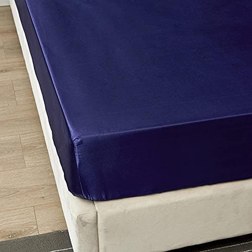 JUWENIN Luxury Silk Satin Deep 12″ Skin Beauty Hair Health Face Care Hypoallergenic Fitted Sheet (Single, Navy)