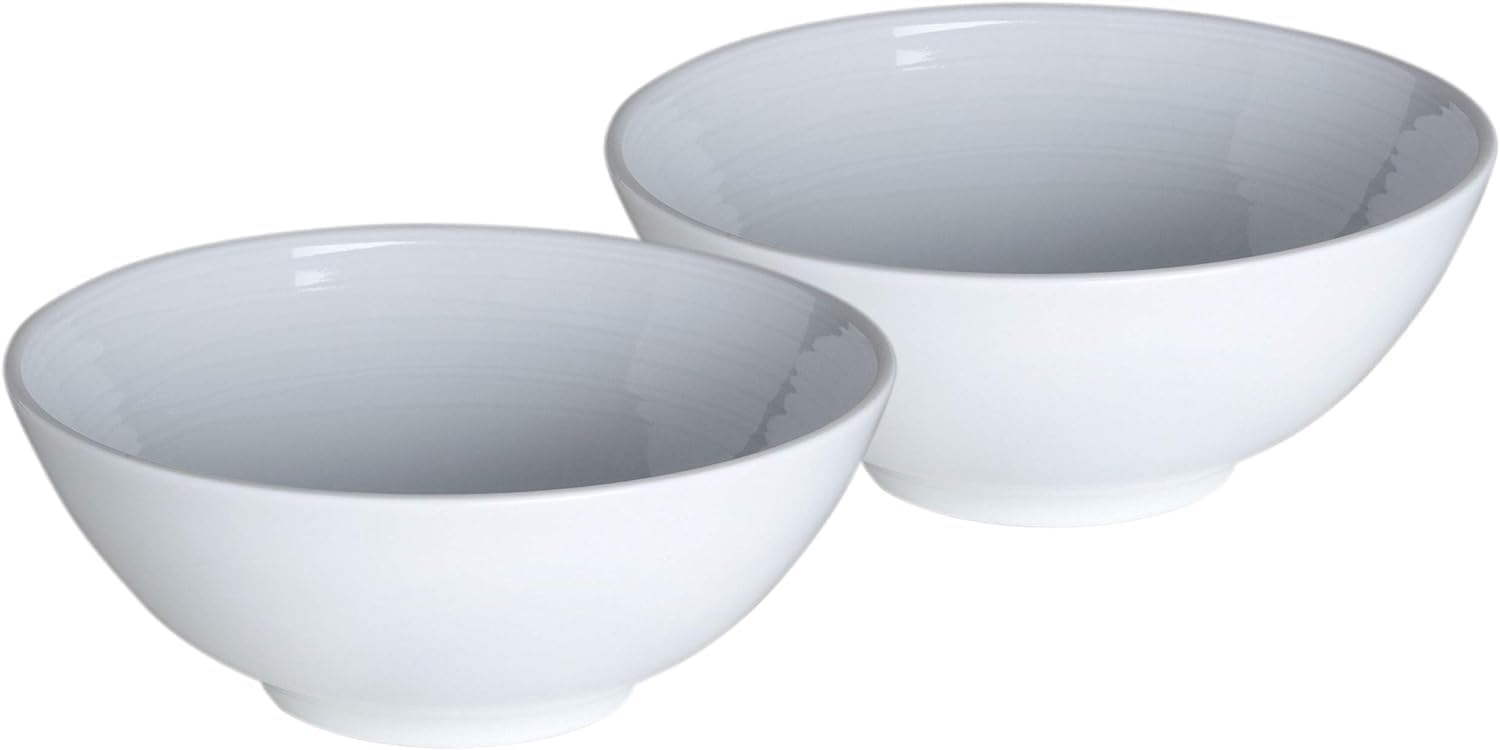 This set of two elegant bowls from the Kahla Nature Dinnerware range are perfect for cereal, ice cream and snacks. Made from white porcelain with a high quality glaze, these bowls are stylish yet simple and functional enough to fit in with any table setting style. Both bowls feature embossed internal rims with a relief ‘inspired by nature’, adding something different from average white dinnerware. With their clean and stylish design, these bowls will create the perfect backdrop for all of your dishes and are perfect for everyday use to special occasions. The bowls are also dishwasher safe for easy cleaning and suitable for use in the microwave. Diameter 15cm, Capacity 500ml.