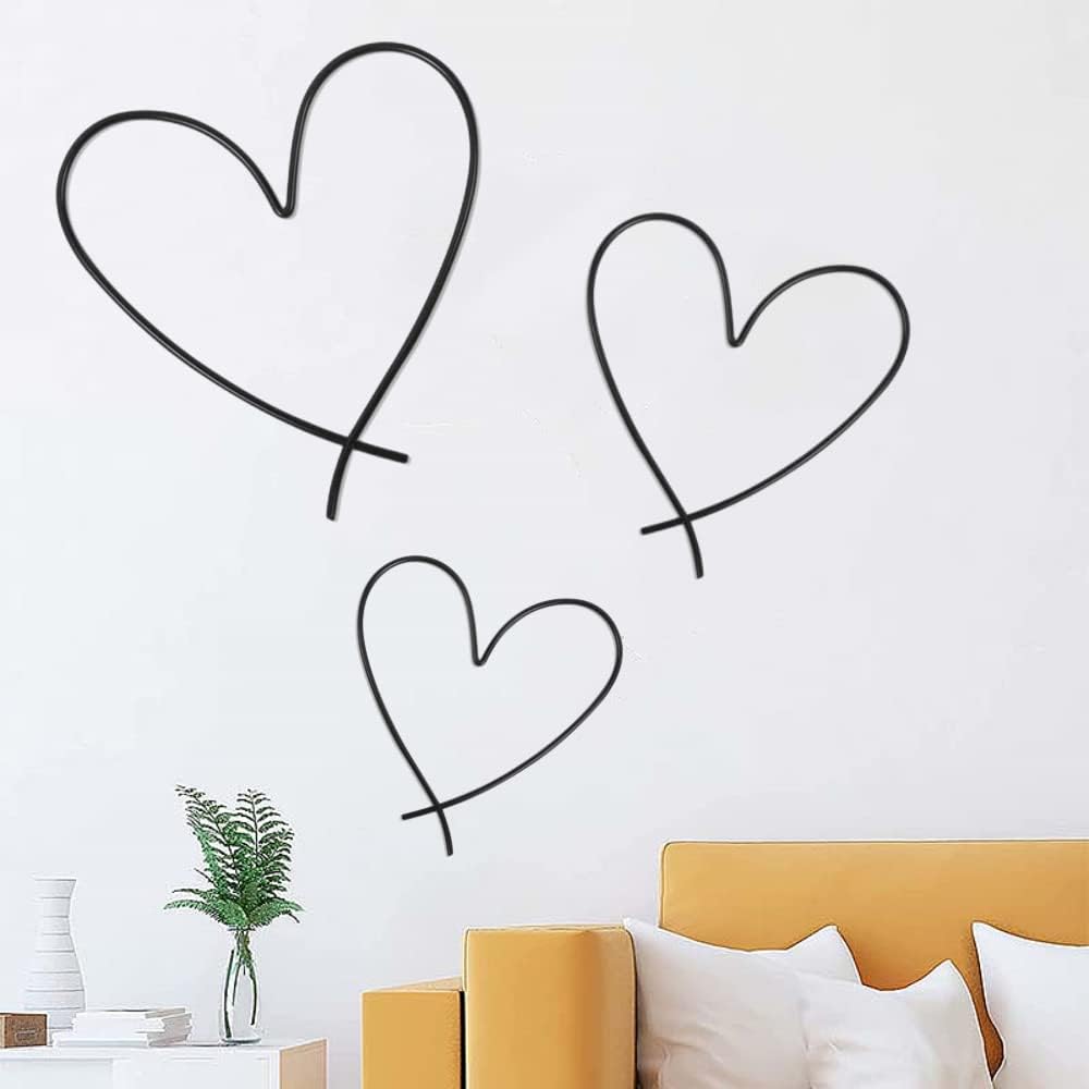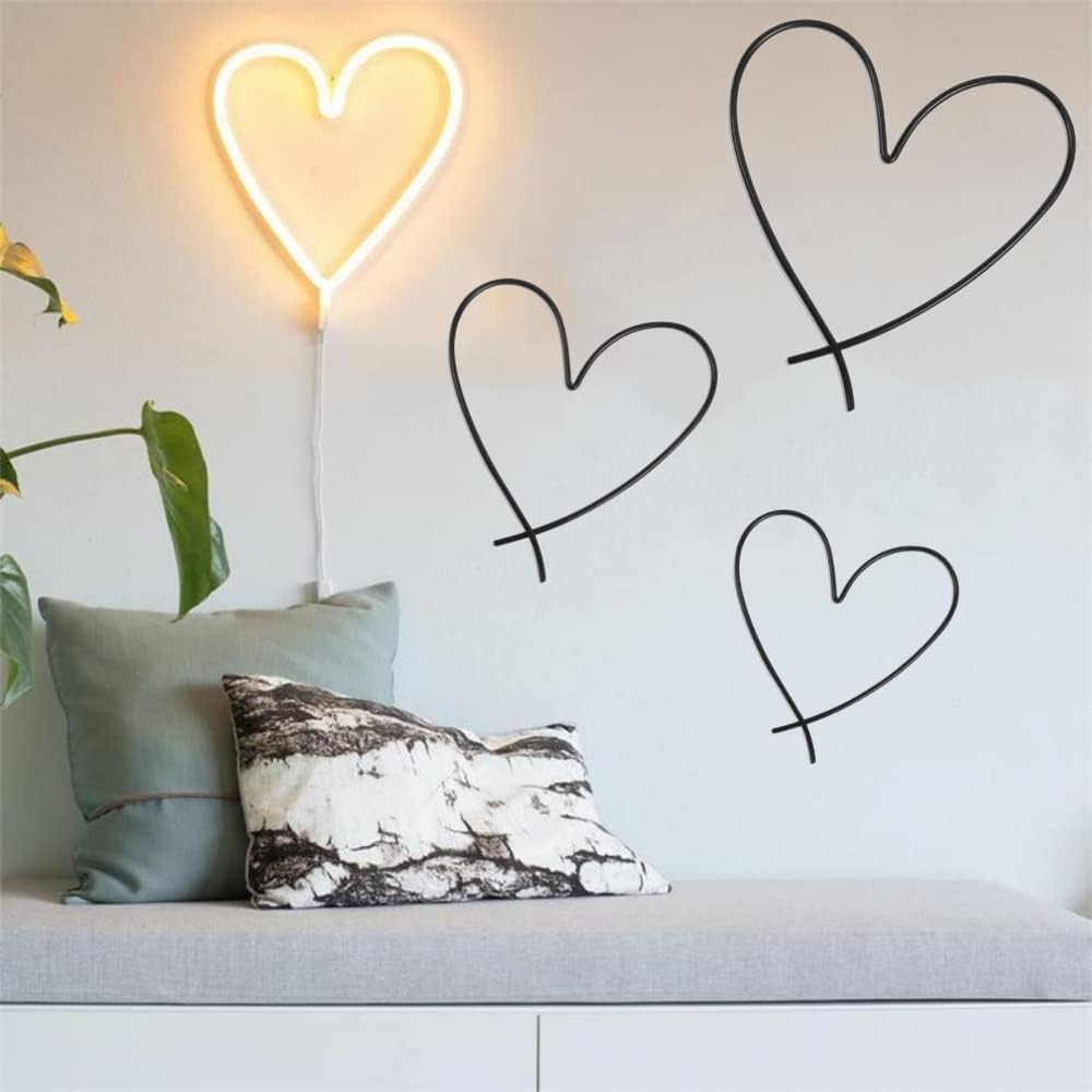 KAISELINNA 3 Pack Large Black Metal Wall Art Heart Metal Wall Decor Wall Sculptures Heart Shaped Wall Sign Black Hanging Ornaments for Bedroom Living Room Decoration