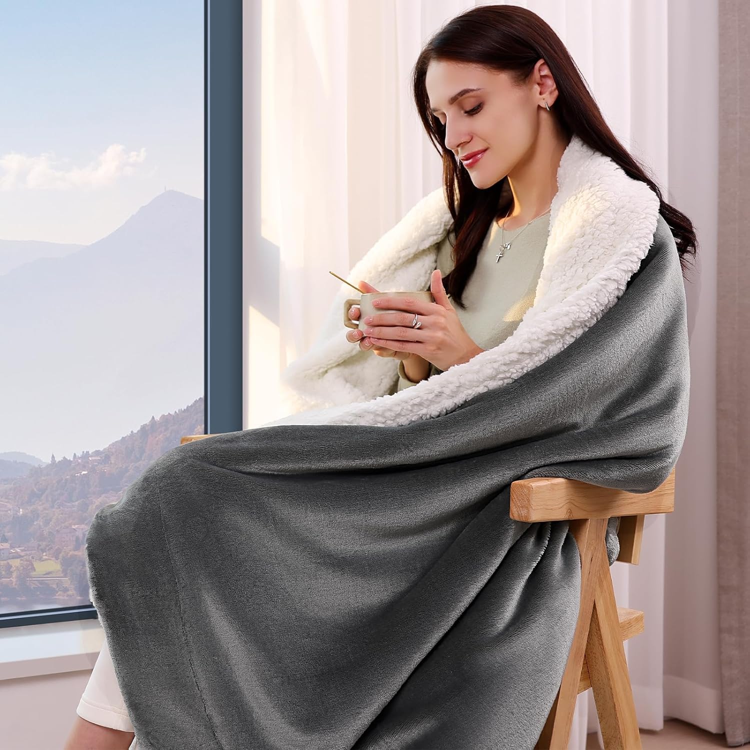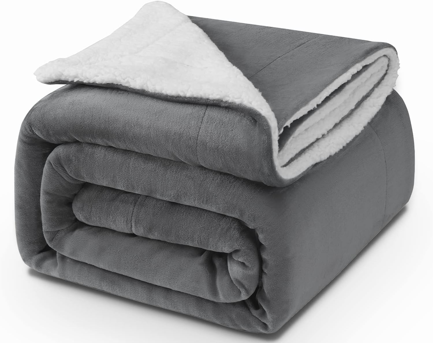 🎈【550 GSM Thicker Blanket】warm blanket made of the finest 100% polyester (270 GSM) + microfibre Sherpa (280 Gsm) stitching. With a total grammage of up to 550 GSM, the high density of the blanket adds to the thickness and warmth of the blanket keeping you warm and cosy during the cold winter months.
