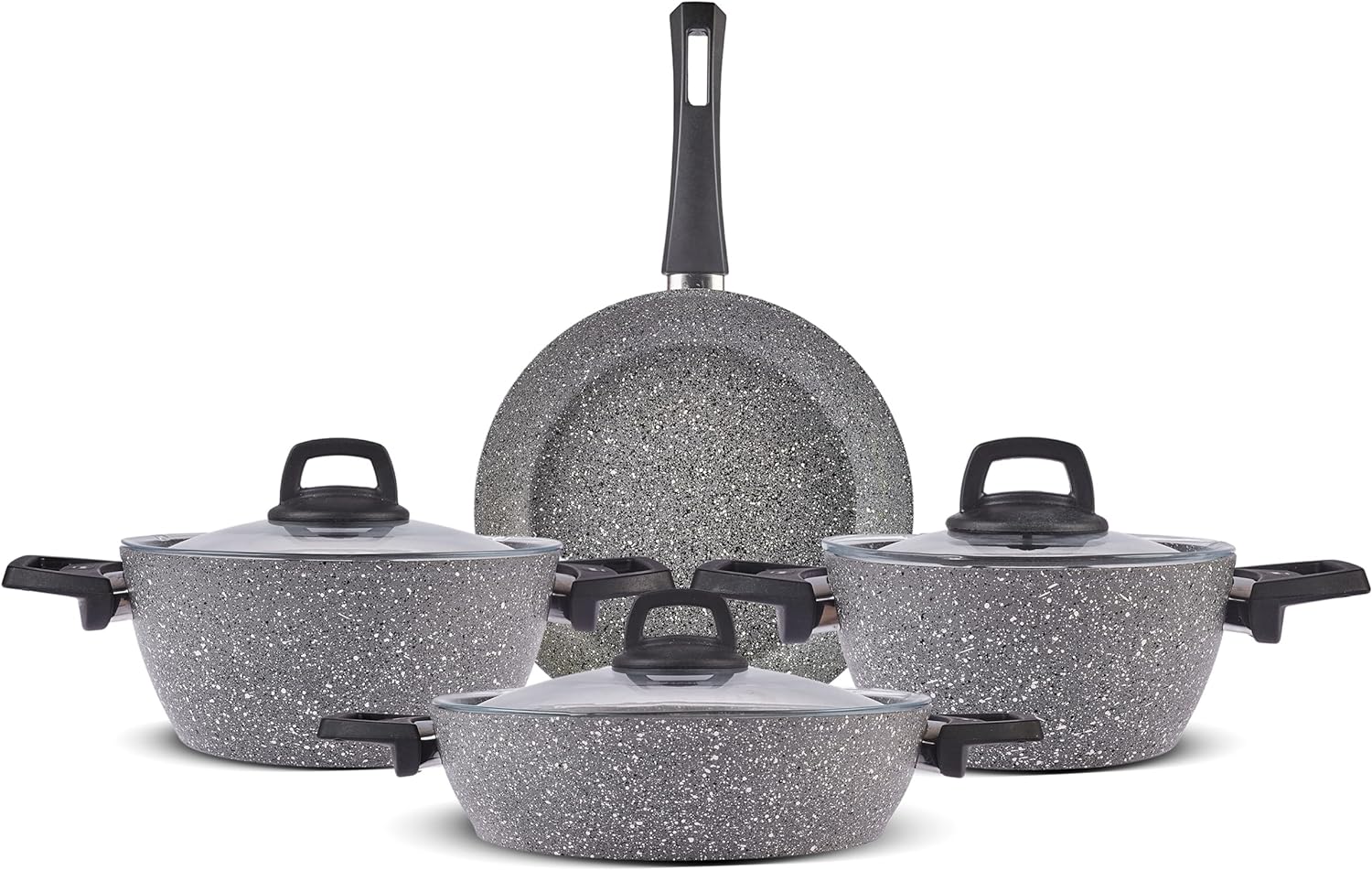 KARACA Gris BioGranite 7 Pieces Granite Cookware Pot and Pan Set,