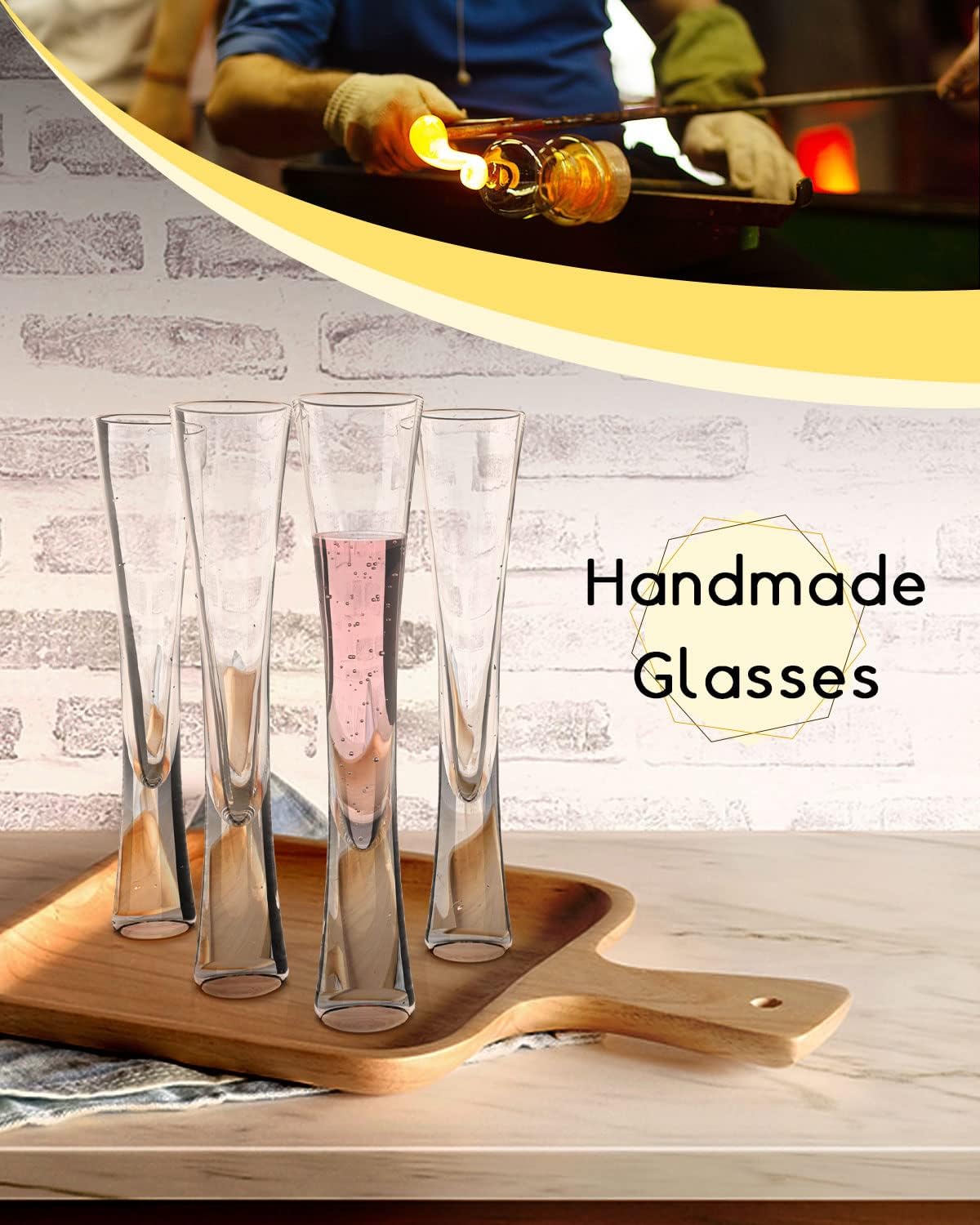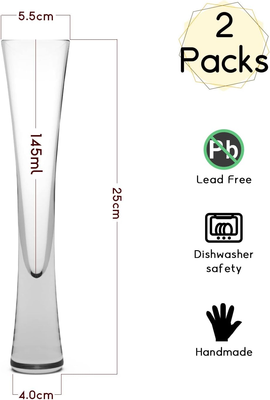 karadrova 2x145ml Champagne Flutes, Prosecco Glasses, Handmade, Clear Crystal Champagne Liqueur Glasses, Prosecco Flute for Wedding Anniversary