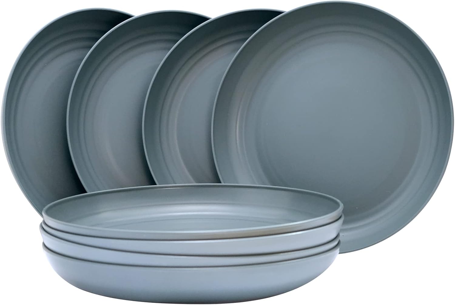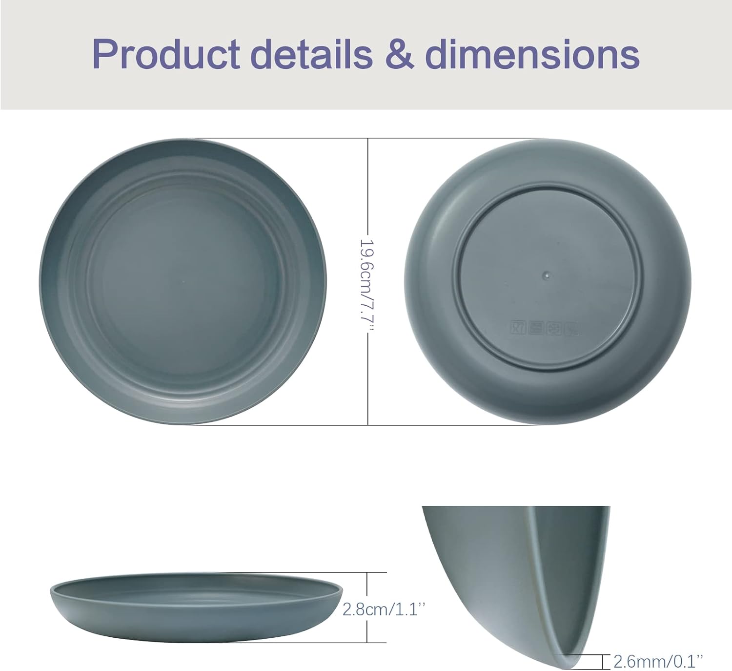 【 8 Plates of 19.6cm/7.7 Inch 】Set of 8 plastic 19.8cm plates in grey color. Ideal size for party, picnic, camping and daily meals at home, school, office, outdoor or traveling. Easy to carry and unbreakable