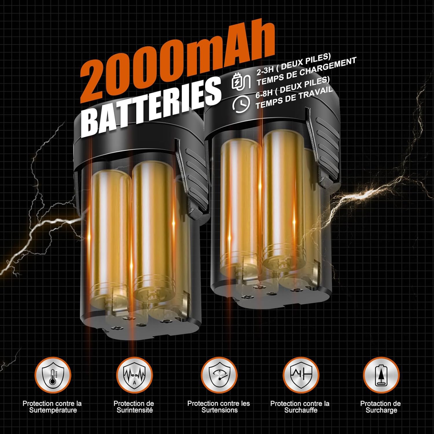 Long Life Rechargeable Lithium Batteries — Our Tree Branch Pruner come with two packs 16.8V 2Ah rechargeable batteries which could support 6-8 working hours after 3hours fully charged.Advanced battery balance technology, built-in over-protection circuit which support over 500 times charge and discharge cycles.