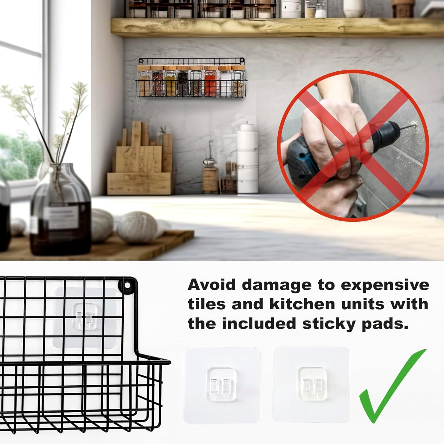 REMOVABLE WITHOUT MARKS: While the stickers can hold up to 5kg in weight, plenty to hold your spices and condiments, they are also removable from non porous surfaces such as cupboard, doors, the side of the fridge or tiles without leaving any marks, making these renter friendly shelves.