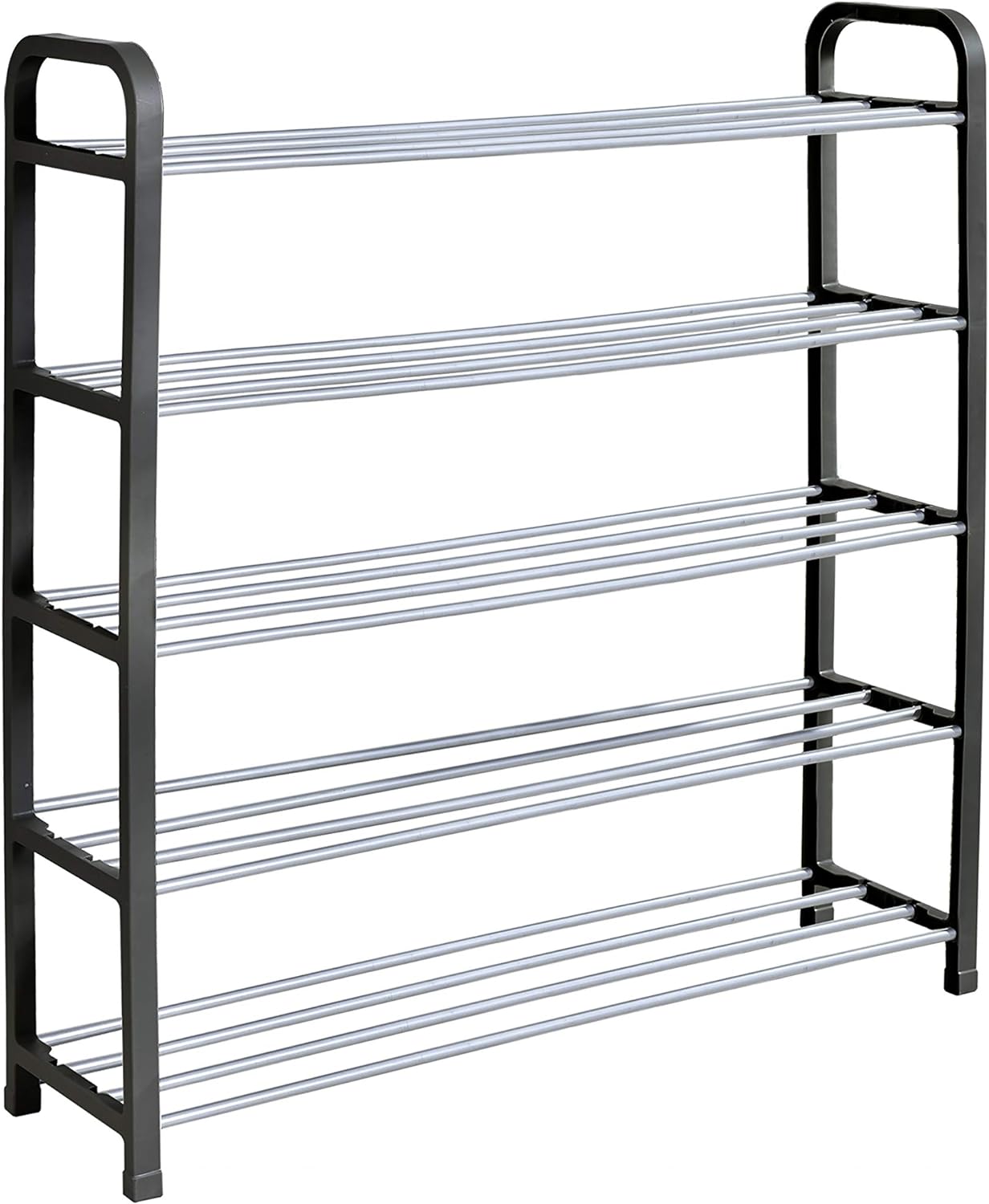 KEPLIN 5 Tier Shoe Storage Rack is a practical shoe organiser rack for your boots and shoes. It has a strong plastic frame with 5 metal shelves for storing up to 20 pairs of shoes or short boots. Ideal for use in offices, boot rooms and other communal areas with multiple pairs of shoes to store or in the home as a shoe organiser. We have a wide selection of home storage solutions, choose from vacuum storage bags, laundry baskets, shoe racks and many more.