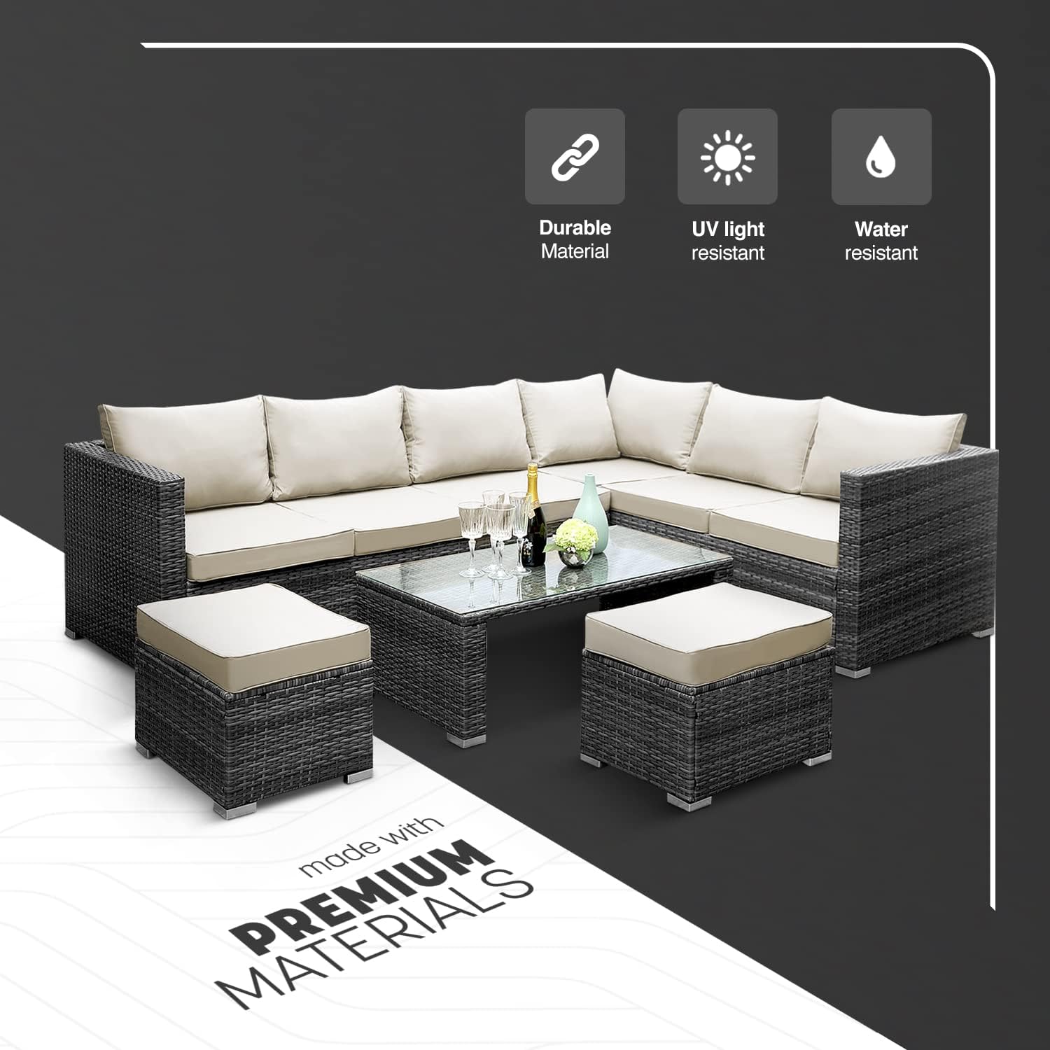 Super Quality All Weather Rattan Set, Weatherproof & UV treated light-resistant material, Premium cushions for all seats with removable covers that you can machine or hand wash