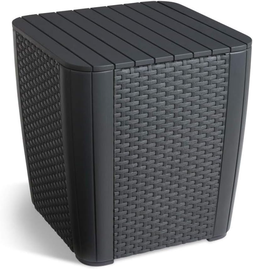 Keter Iowa 3-Piece Rattan Effect Storage Table Balcony Bistro Set – Graphite