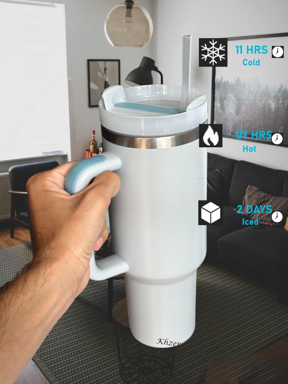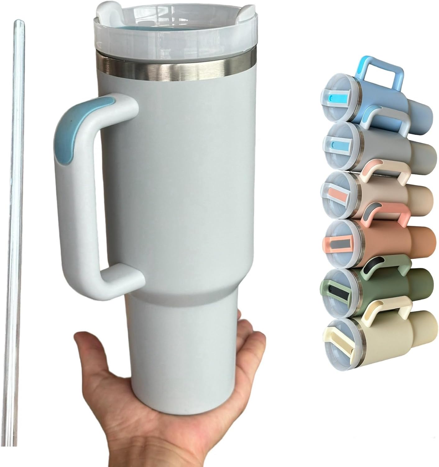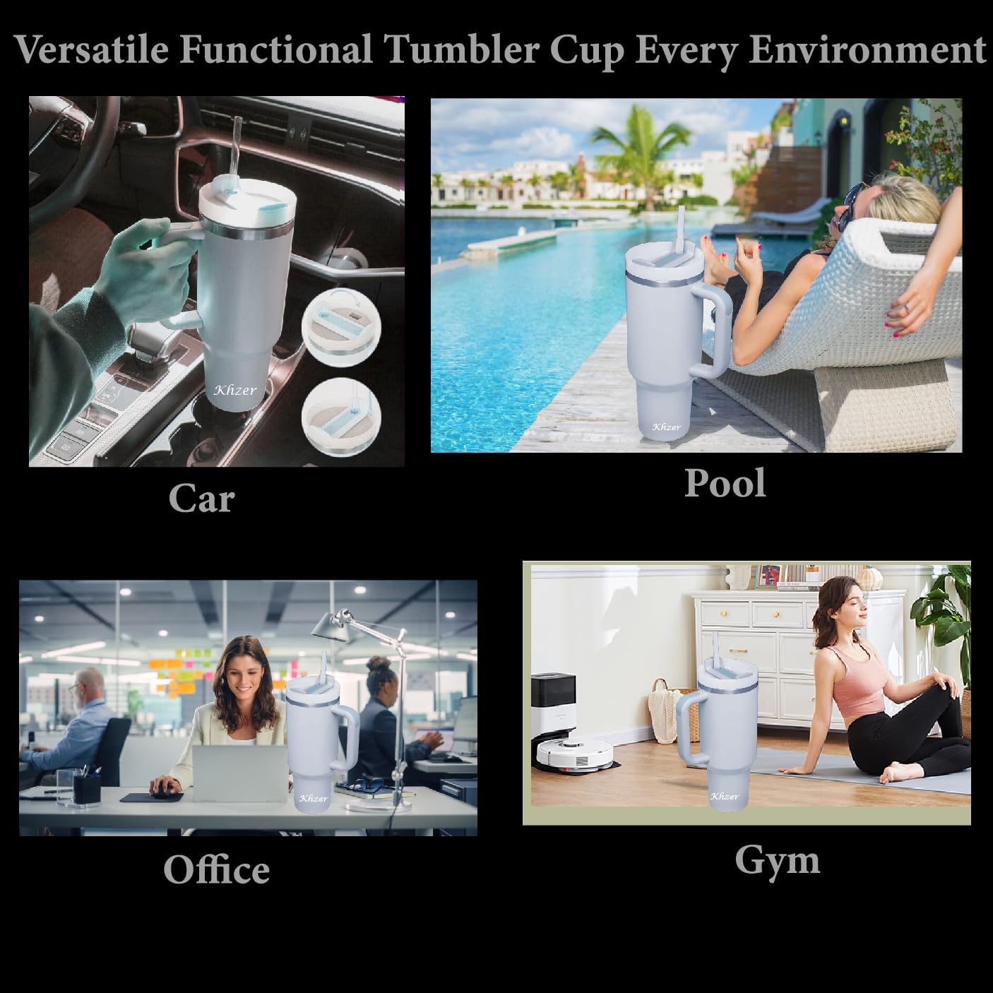 Khzer 40 OZ Tumbler with Straw and Lid-Stainless Steel Coffee Mug with Handle- Insulated Coffee Cup Travel Mug for Hot and Cold Beverages 2-in-1 Lid Water Bottle (Fog)