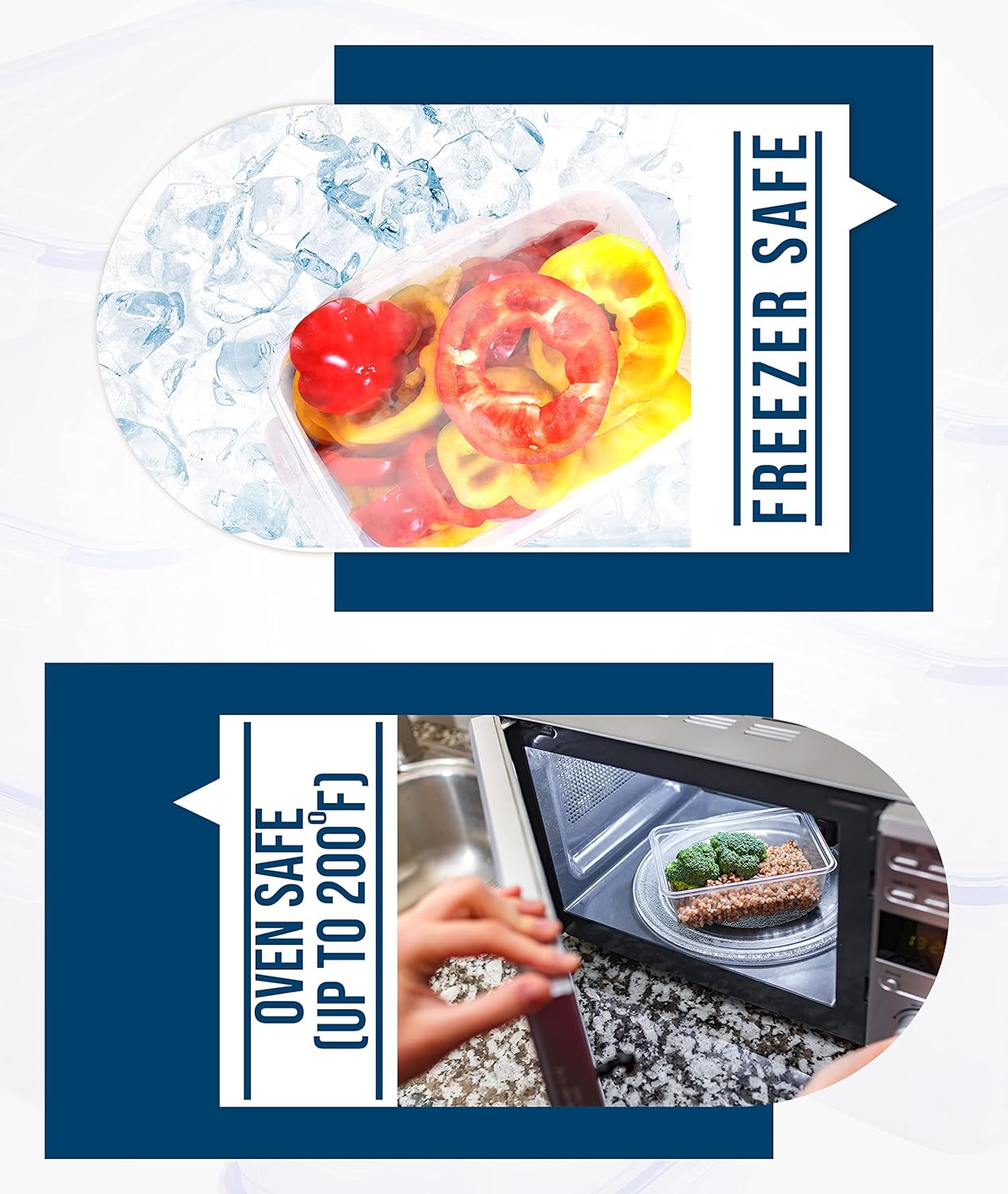 The containers (not the lids) are freezer, microwave, and top-rack dishwasher friendly meaning you do not have to worry about pouring the food onto a plate before putting it into the microwave etc., simply just remove the lid and put the container inside the microwave. This way you can save a lot of time as well.