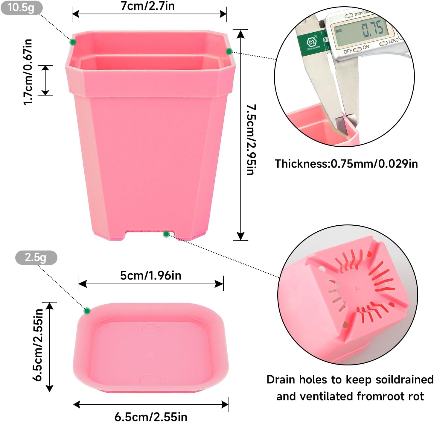 KINGLAKE 24Pcs 7cm Seed Seedling Pots, Square Plastic Plant Pots with Trays, Small Coloured Nursery Flower Pots for Cuttings Vegetables Succulent Cacti Herbs