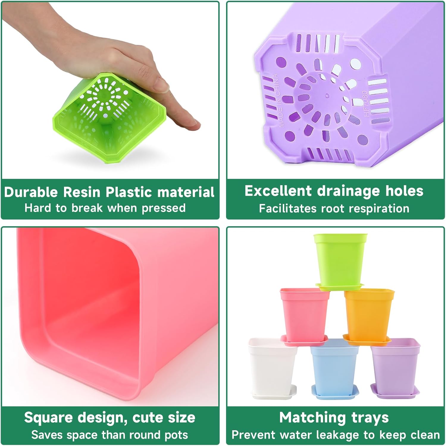 【What You Will Get】Package contains: total 24 pcs square coloured plant pots; Dimensions: opening 7cm, bottom 5cm, height 8cm.