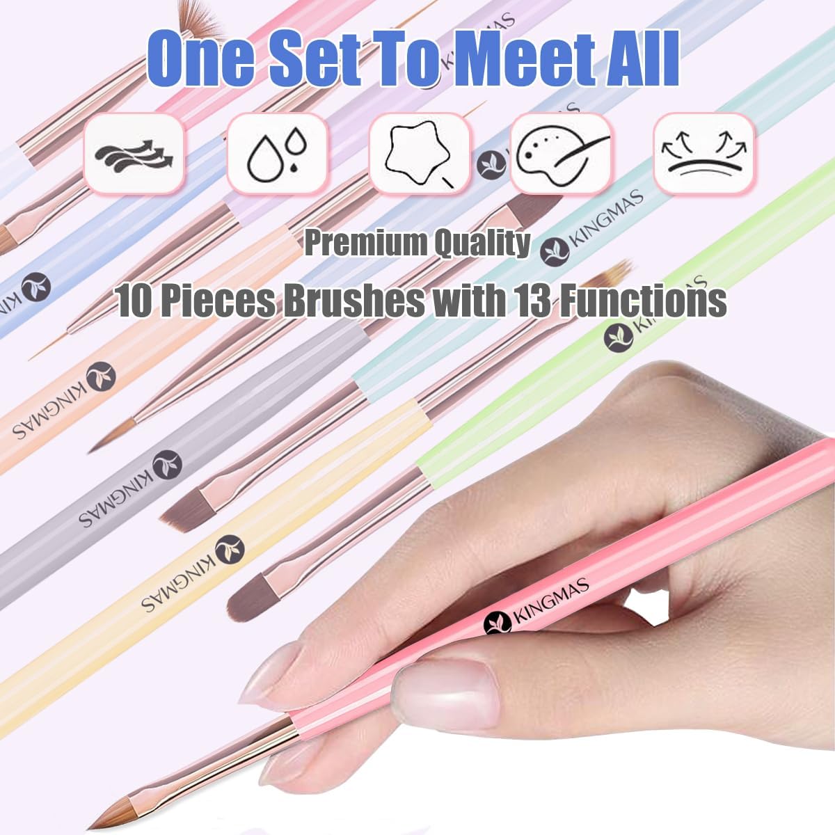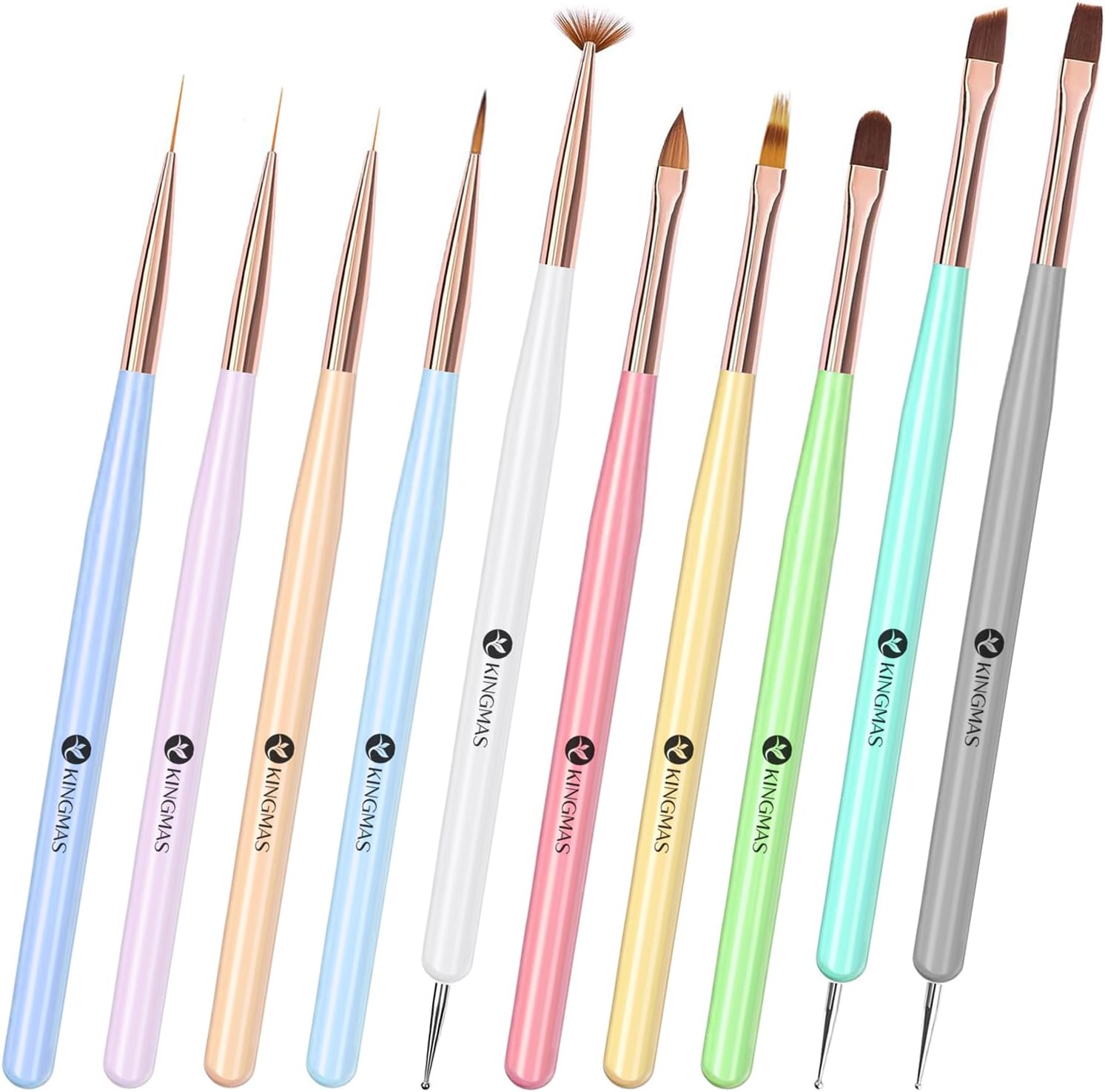 KINGMAS 10Pcs Nail Art Brushes, Nail Gel Polish Painting Brush Drawing Pen, Nail Liner Brush and Nail Dotting Pen for Gel Polish DIY Manicure Salon at Home