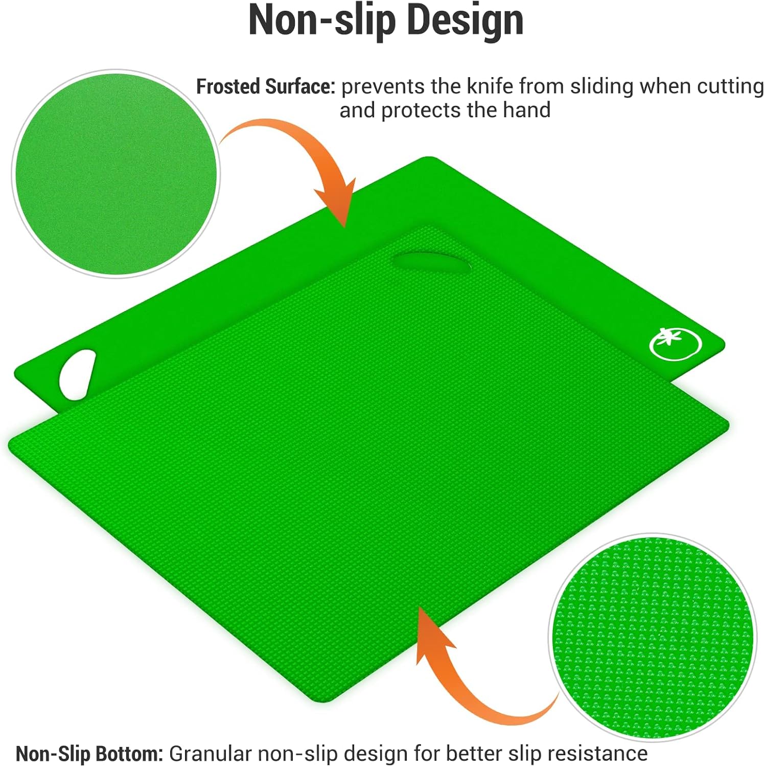 Each chopping board has a crosshatch textured back, so the mats will not slip on your countertop! For wet or very slippery surfaces, just place a dampened paper towel underneath for unearthly amazing stability.