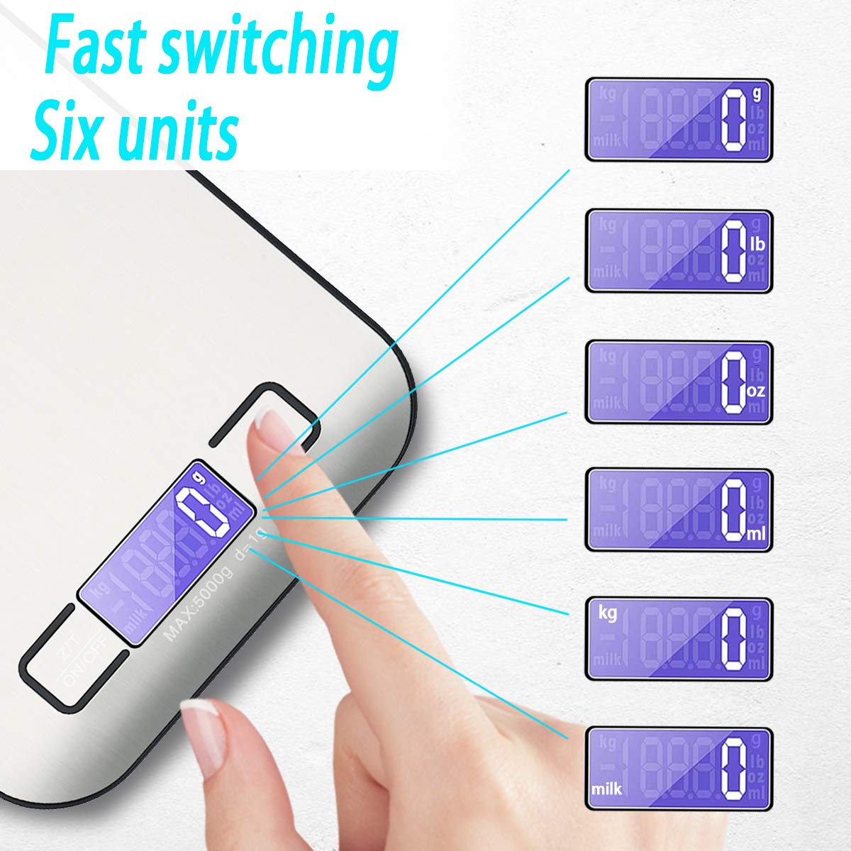 Function key: Z/T-Press the power button once to peel the unit conversion of 6 units (g/kg/LB/Oz/ml/Milk), which is suitable for more people. Overload notice and low voltage reminder.