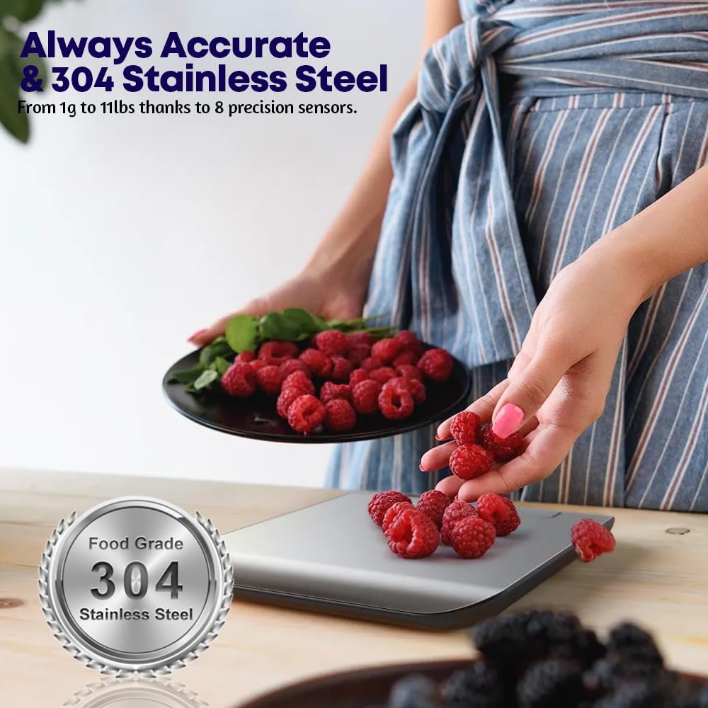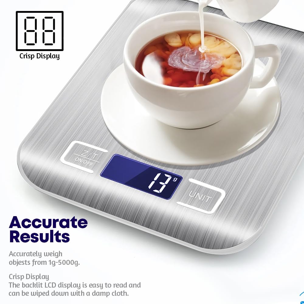 [Tare Function] Features tare and auto-zero functions for easy compatibility with other containers; Measure in a mug, plate, or different sized bowl with dependable and hassle-free accuracy making it easy to achieve accurate readouts of ingredients.