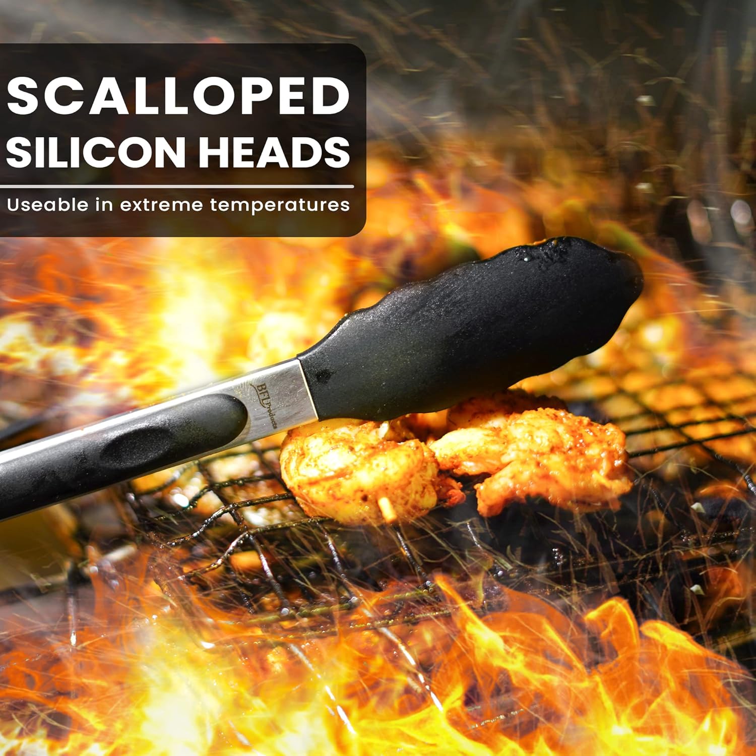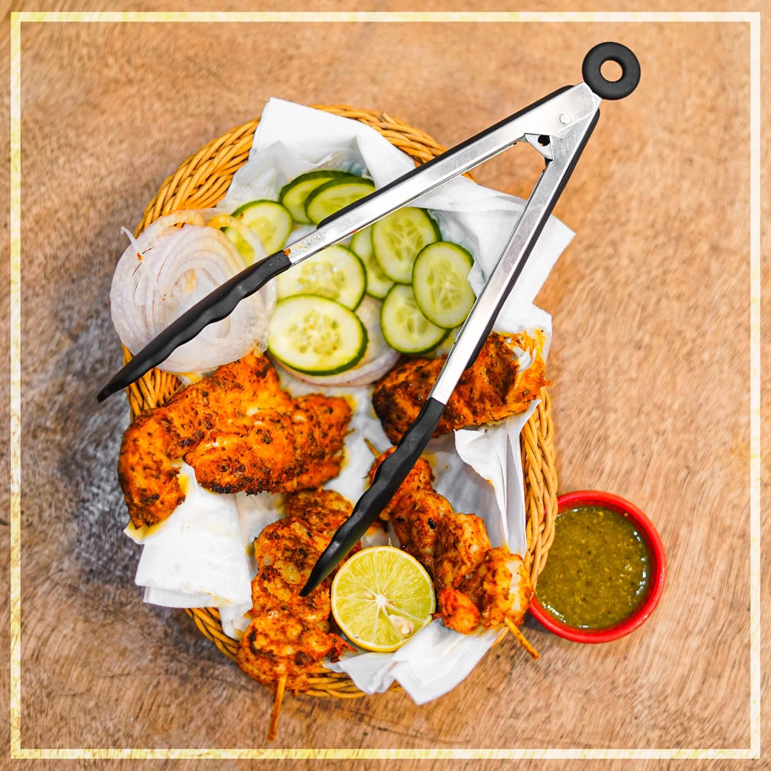 【Tongs with Silicone Tips】These 9 inch kitchen tongs comes with a high-quality silicone tip that provides incredible grip throughout. The silicone tip is made up of durable material which makes your cooking experience implausible