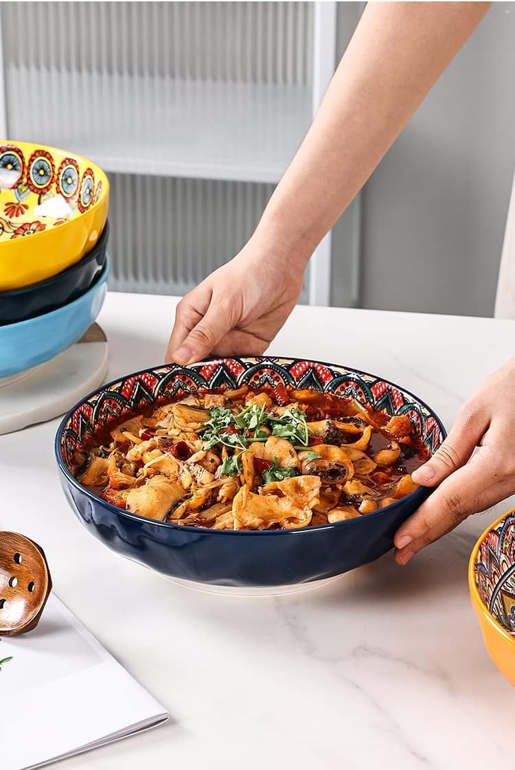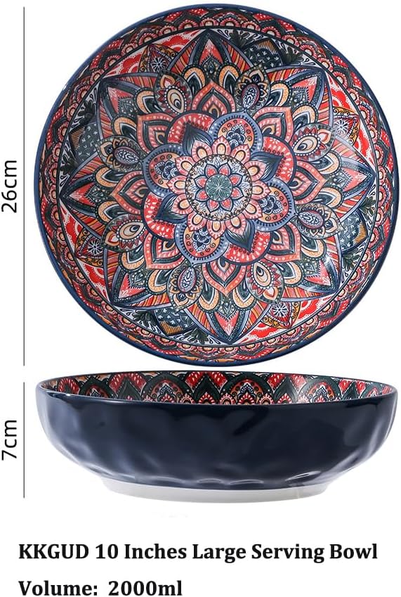 KKgud strives to provide quality items for our customers. Take the serving bowls, you will be happy with its beauty, vesatility and quality.10 inches ceramic bowls with bright color and novelty attractive pattern.The bowls are made of high quality ceramic, lead free, dishwasher safe and microwave safe.1 Pack, the diameter of them is around 10.2 inches (26cm). Do check the size before buying. Thank you!The bowls are well made and sturdy. It’s neither too heavy nor too light.It’s quite easy to wash. Best to wash with hands. Dishwasher safe, microwavable, oven safe.