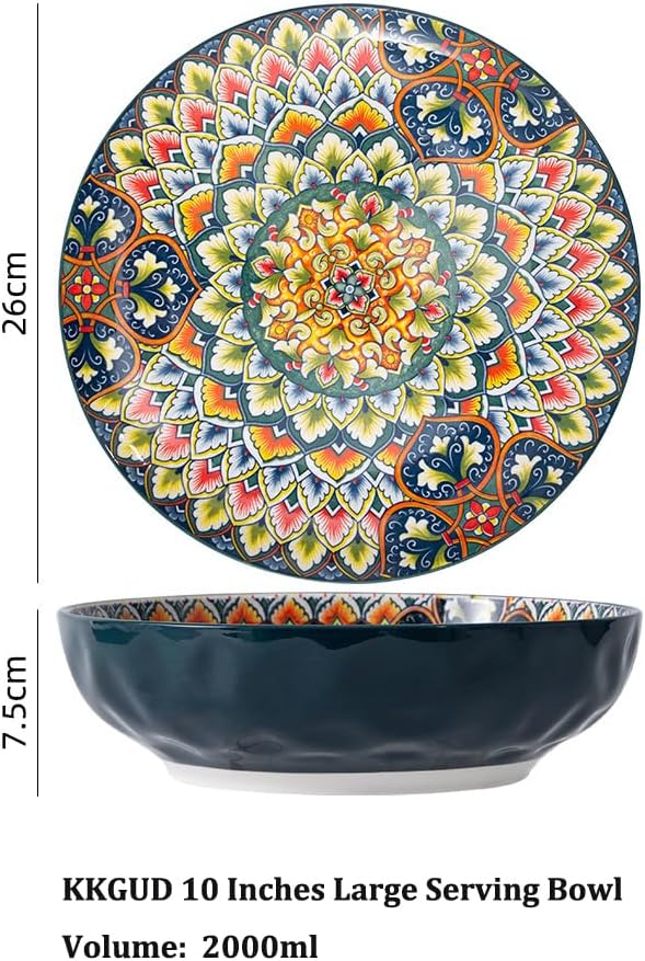 KKgud strives to provide quality items for our customers. Take the serving bowls, you will be happy with its beauty, vesatility and quality.10 inches ceramic bowls with bright color and novelty attractive pattern.The bowls are made of high quality ceramic, lead free, dishwasher safe and microwave safe.1 Pack, the diameter of them is around 10.2 inches (26cm). Do check the size before buying. Thank you!The bowls are well made and sturdy. It’s neither too heavy nor too light.It’s quite easy to wash. Best to wash with hands. Dishwasher safe, microwavable, oven safe.