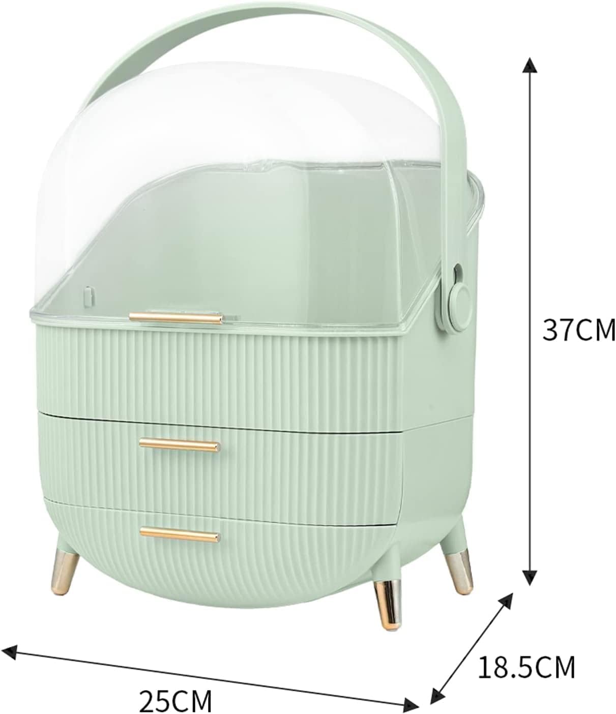Non-slip Foot Stand Electroplated non-slip feet perfectly match the color of the cosmetic storage, luxury and elegance Large Capacity 3 Layers of Large Capacity, Meet the needs of daily storage of cosmetic and skincare products, say goodbye to clutter, become a sophisticated woman. Portable carry handle With a handle that can be easily carried, You can carry this makeup box easily from one counter to another during cleaning. 【Multi-Functional Design】: Product size: 11.4×8.1×14.4in, This dustproof cosmetic organizer is perfect for storing cosmetics, mmakeup,skin care products, and jewelry. Its elegant retro design makes it a great addition to any room decor. Customers like the sturdiness, value, appearance, size and storage space of the makeup case. For example, they mention it’s well-crafted, looks great, has elegant handles and is brilliant value for money. They appreciate the size, saying it’ll fit standard sized products standing up and that it frees up space on the table. AI-generated from the text of customer reviews