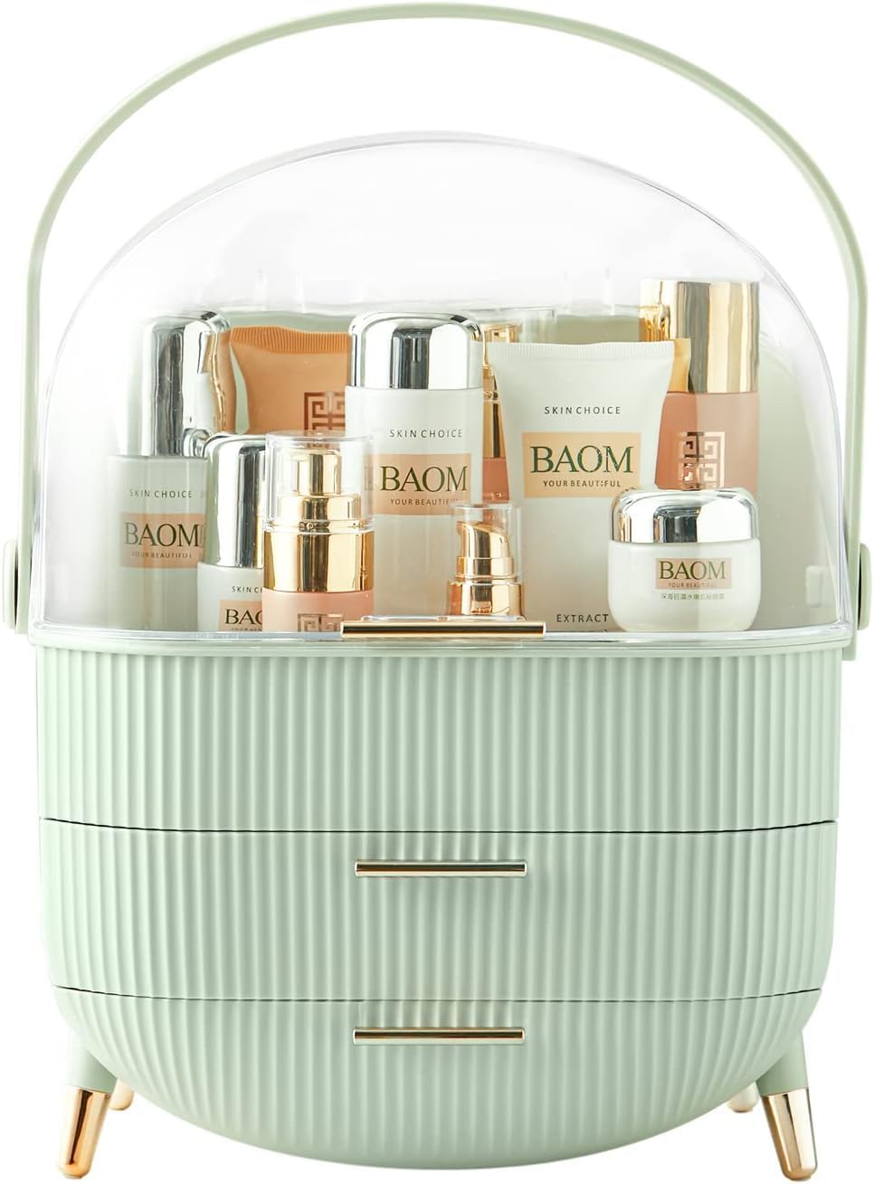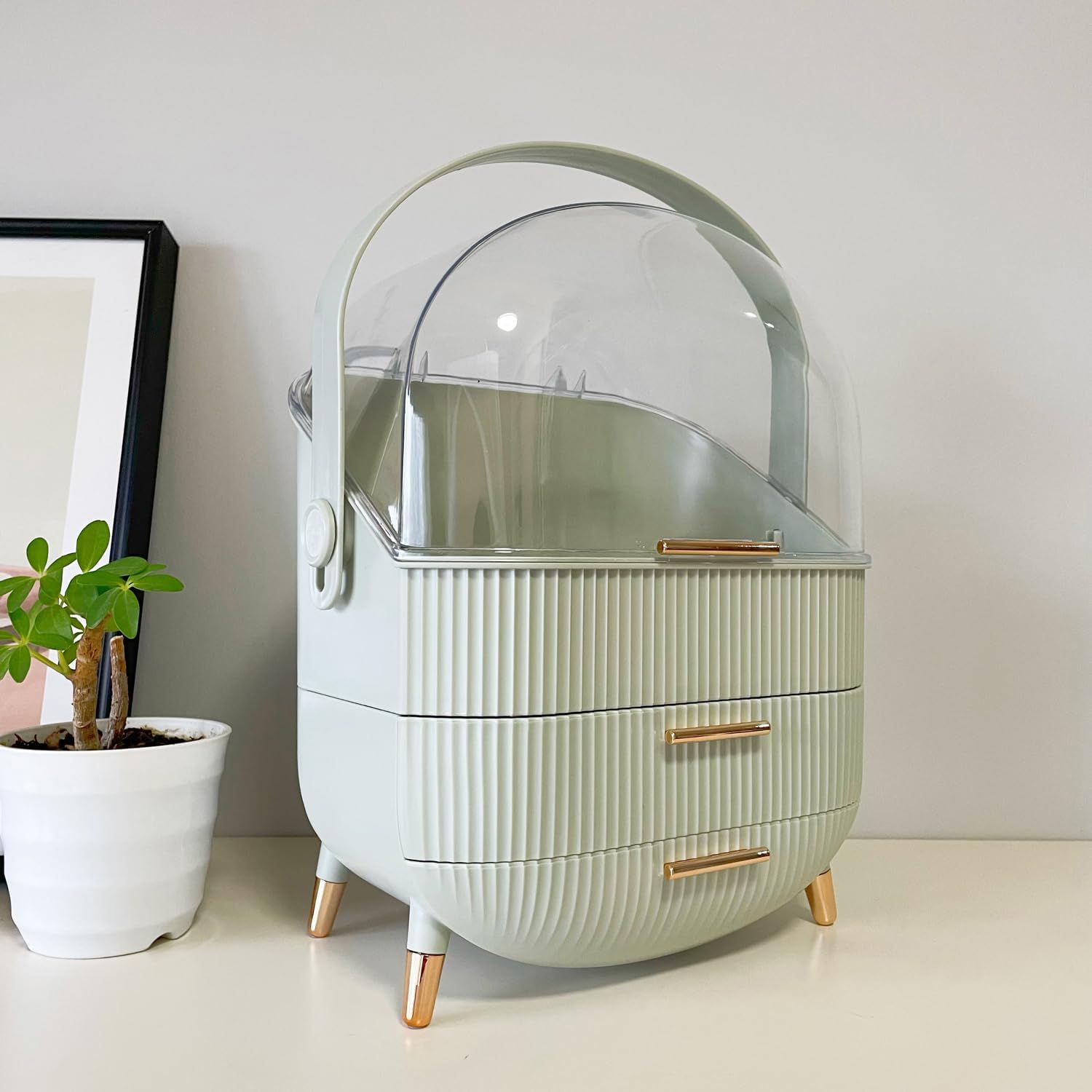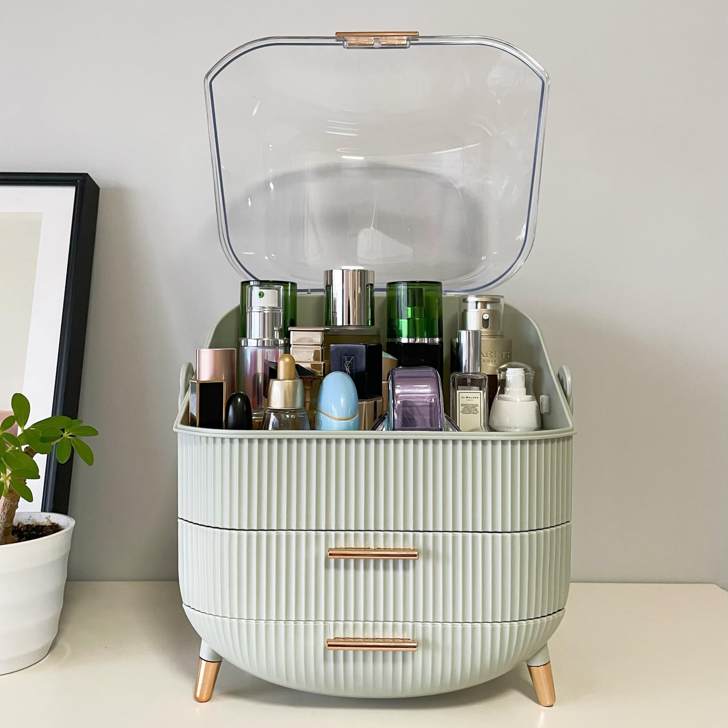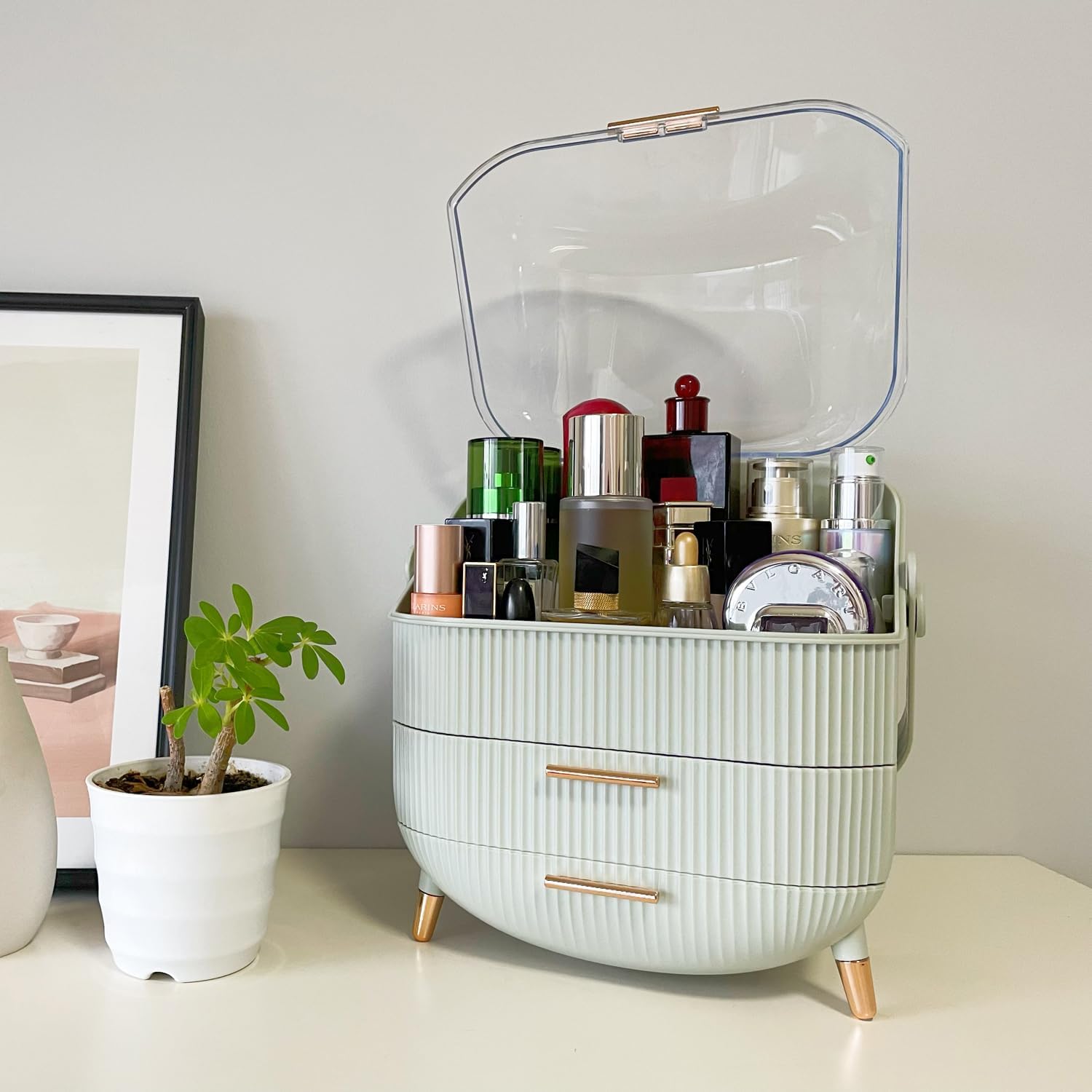 Kousee Makeup Storage Organizer,Large Cosmetics Display Case with 2-Layer Storage Box and Transparent Cover, Bedroom Vanity Desk (Mint Green)